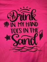 Fruit Of The Loom Hot Pink Beach T Shirt Drink In My Hand Toes In Sand Women Tee
