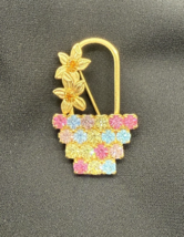 Vintage Brooch- Goldtone Pastel/ Multicolor Rhinestone Floral Flower Basket Pin