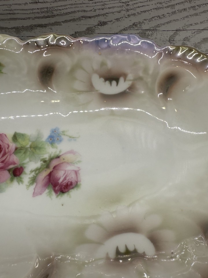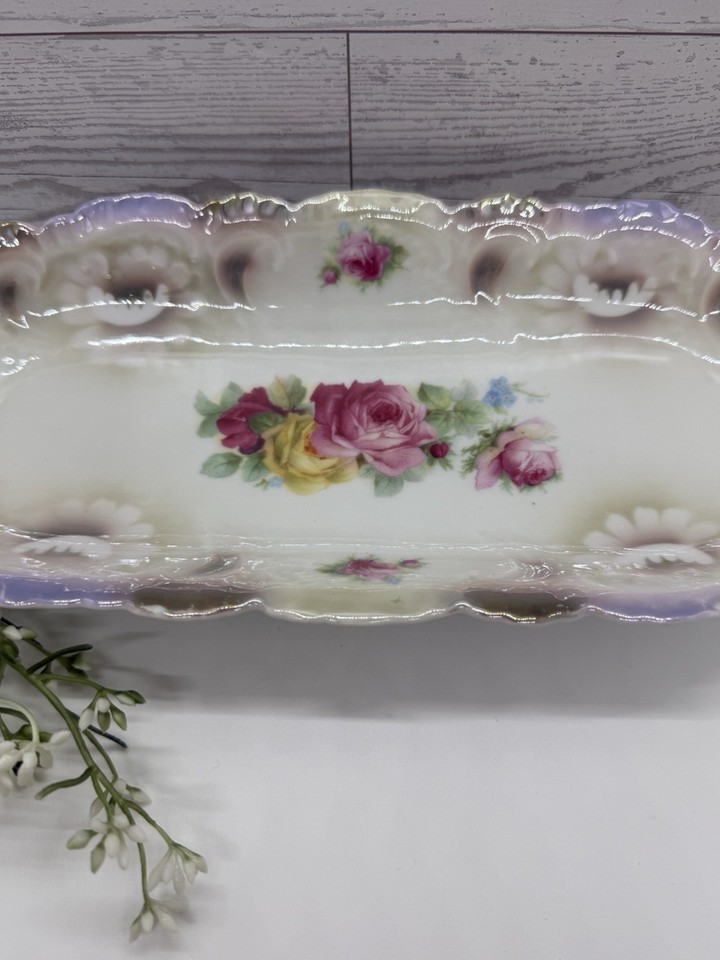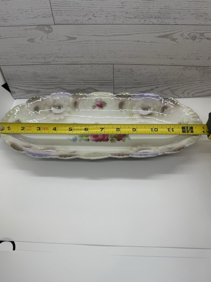 Vintage Bavaria Porcelain Tray 13” Roses Floral Scalloped Vanity Relish Dish