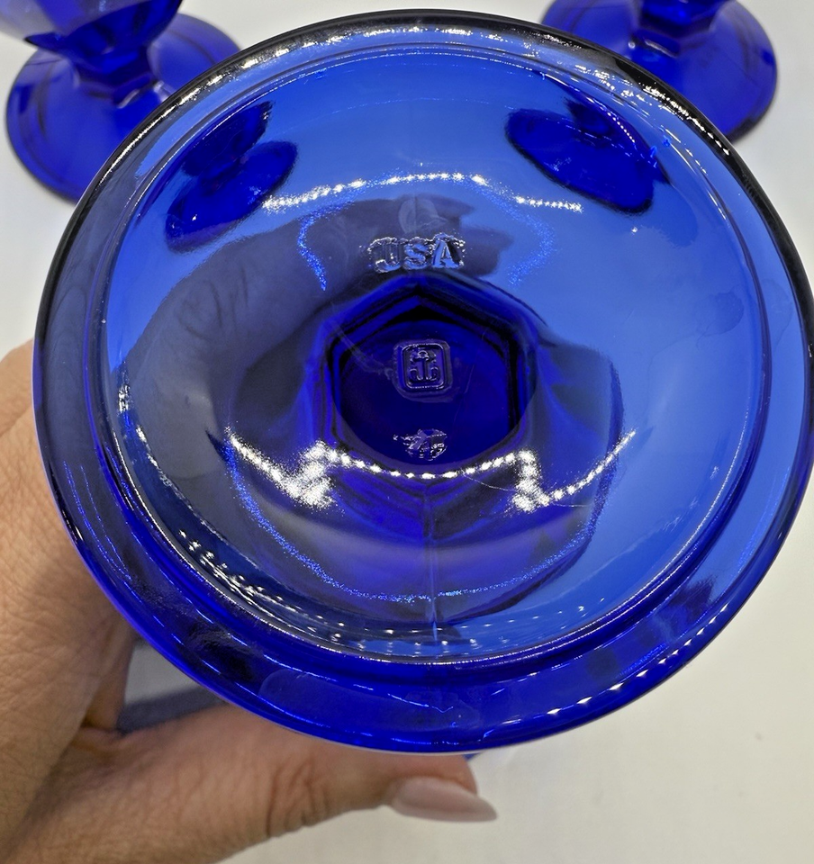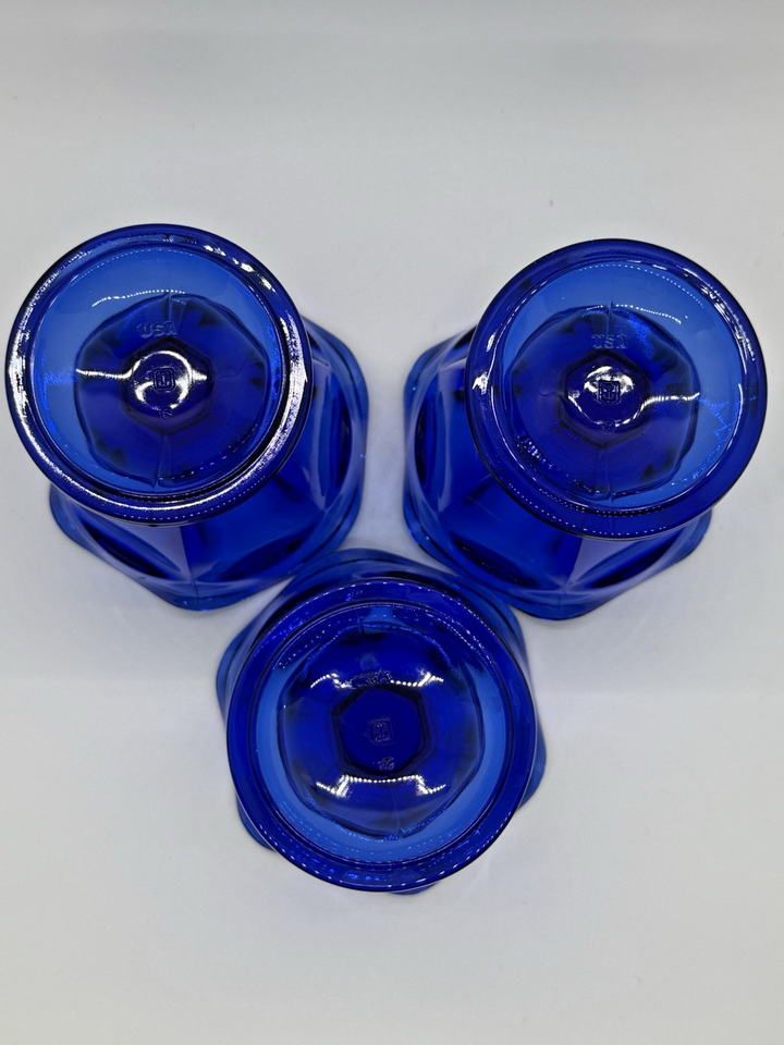 Vintage Anchor Hocking Cobalt Blue Footed Dessert Sundae Dishes - Set of 3- USA