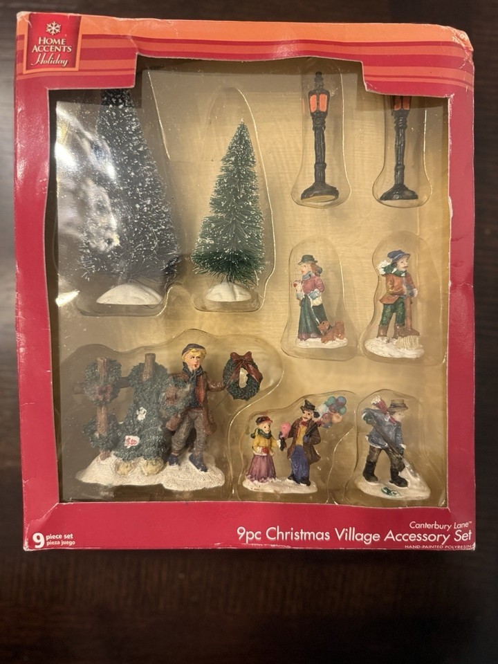 Canterbury Lane 9 Pc Christmas Village Accessory Set Hand Painted Polyresin Used
