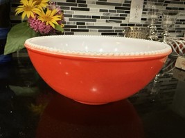 Rare McKee Beaded Edge Milk Glass Red/Orange Large Mixing Bowl 11 1/4" Diam