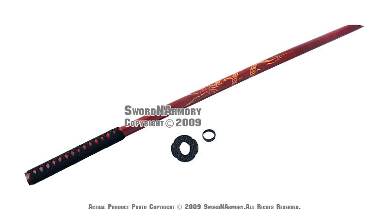 bokken is constructed of wood with a red lacquer finish.