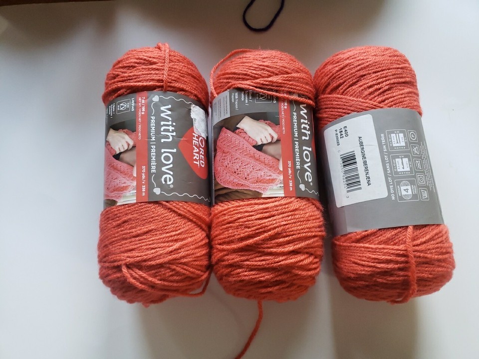 Red heart yarn Premium 7oz Aubergine/ Berenjena Pk Of 3