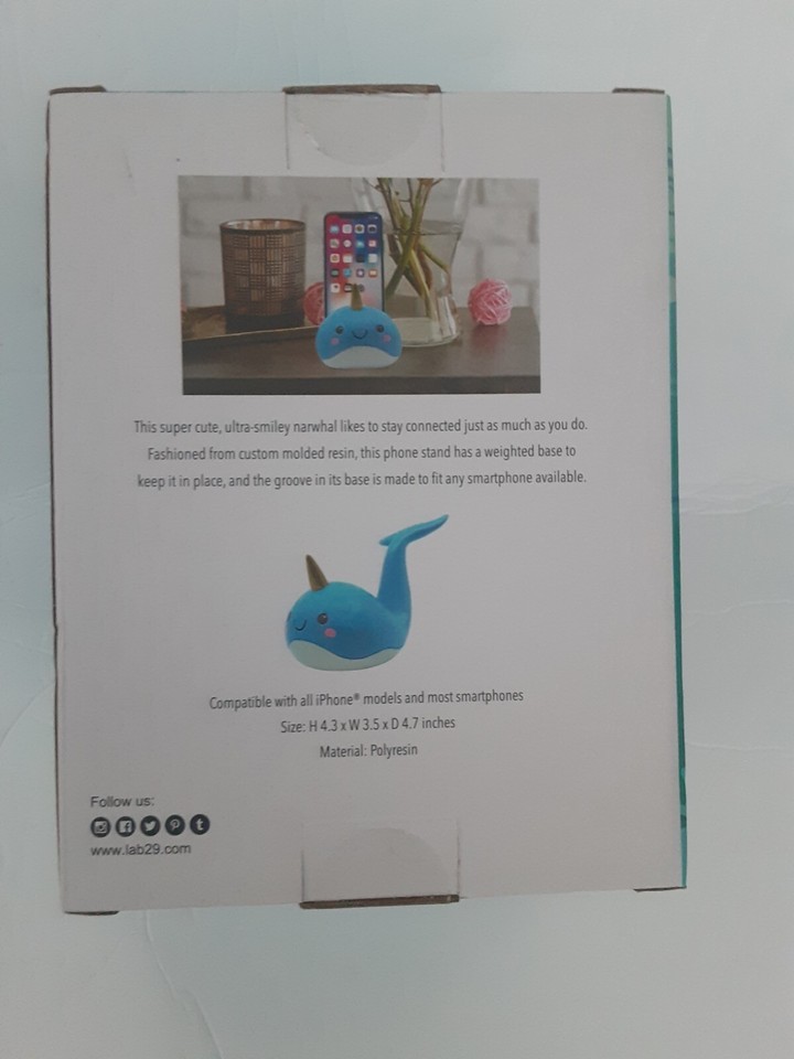 This super cute, ultra -smiley narwhal likes to stay connected just as much as you do. Fashioned from custom molded resin, this phone stand has a weighted base to keep it in place, and the groove in it's base is made to fit any smartphone available.