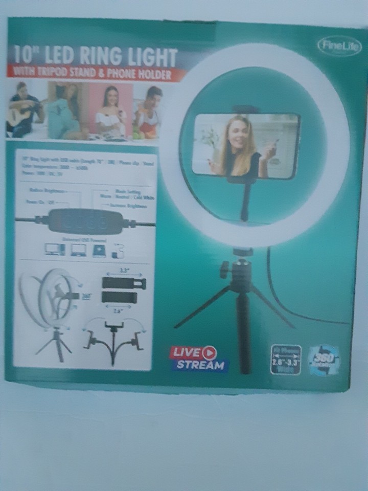 10" LED RING LIGHT W/TRIPOD STAND PHONE HOLDER- DIMMABLE-"FINE LIFE" #01299.
