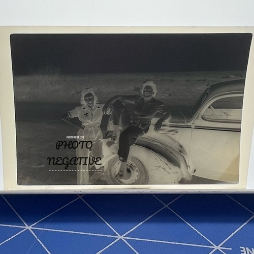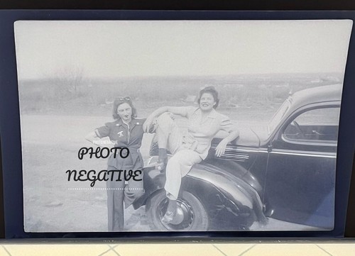 1930s Photo Negative Two Women Posing In Hood Of Car