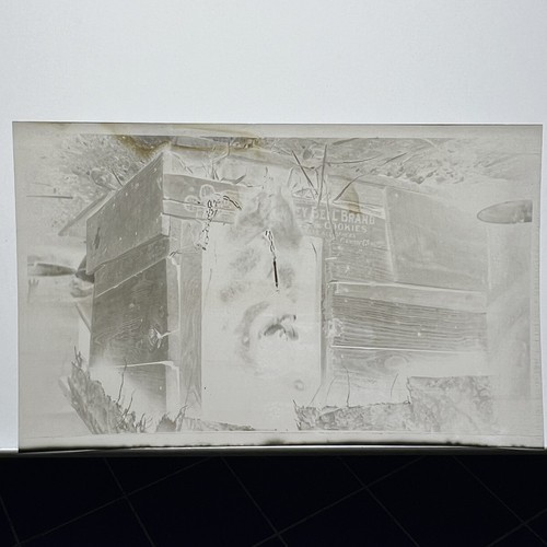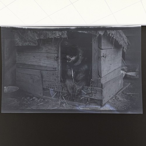 1930s Photo Negative Dog In Dog House Made From Scraps Of Wood