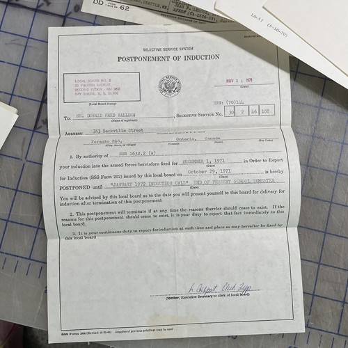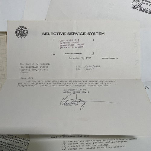 Vietnam War Draft Cards Selective Service Conscientious Objector Went To Canada