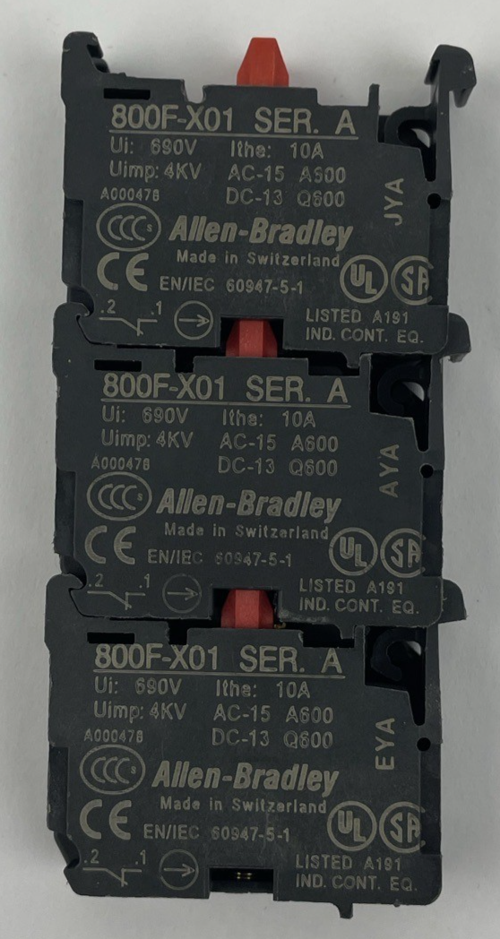 OEM Allen Bradley 800F-X01 Ser A Contact 1 NC, 10 Amp, 22.5mm ( Lot of 3 )