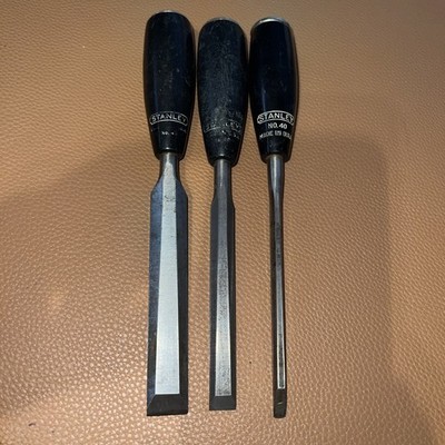 Vintage Stanley No. 40 Lot of 3 Wood Chisels and similar items