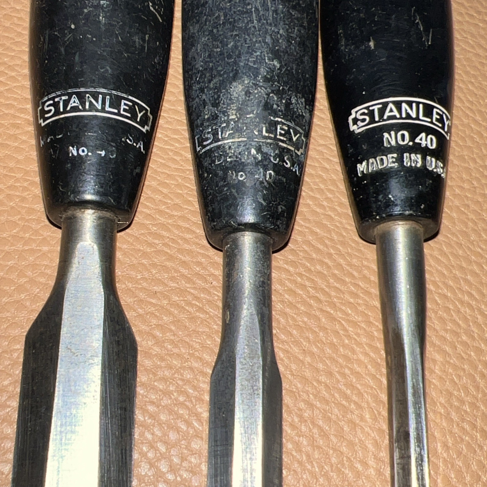 Vintage Stanley No. 40 Lot of 3 Wood Chisels 1/4" , 1/2", 3/4" Made in USA