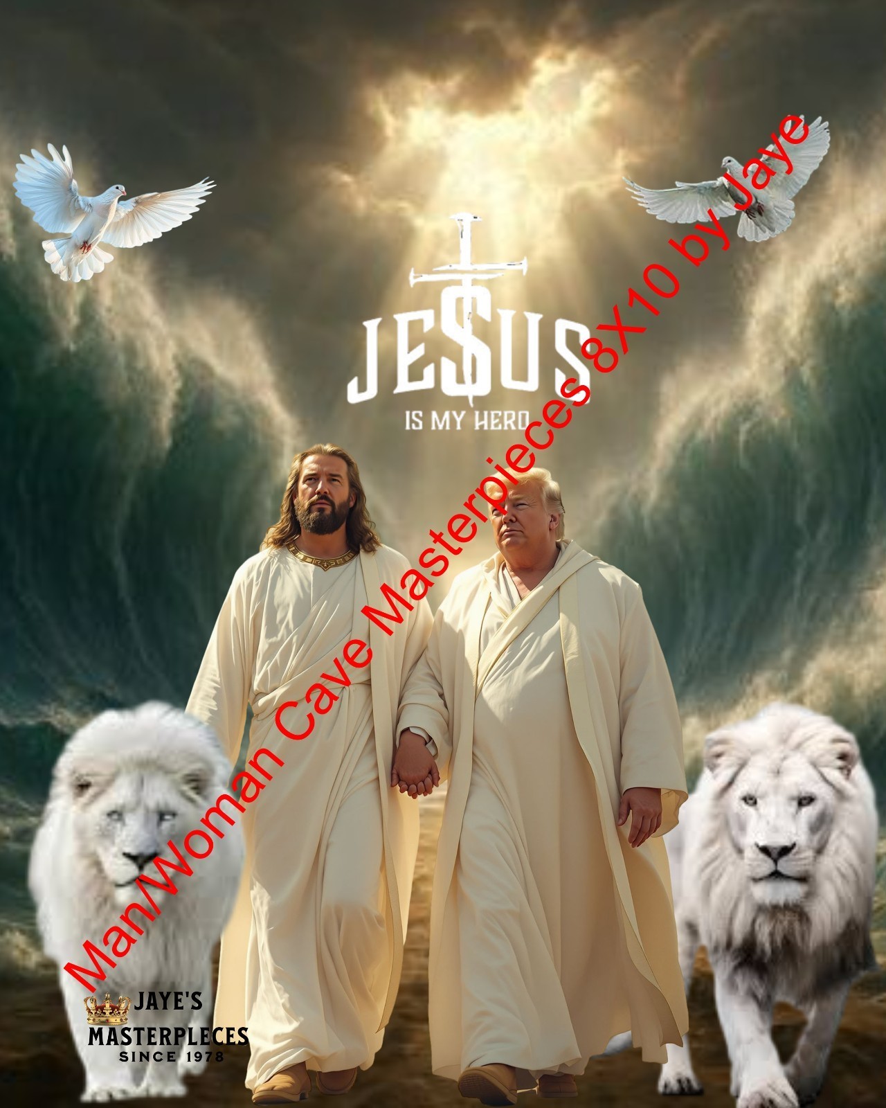 Christian art 2, Jesus Christ and Donald Trump walking on departed water waves Prints 8" x 10" ready to be framed