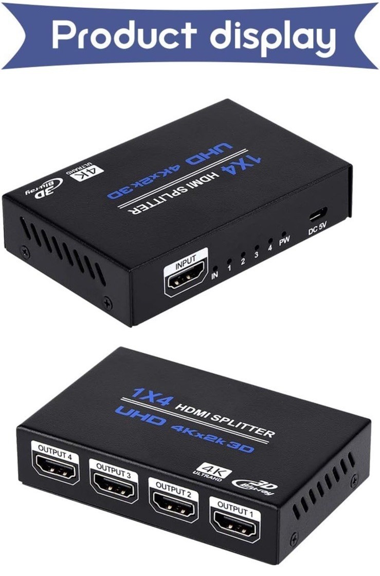 1x4 HDMI Splitter, 1 in 4 Out HDMI Splitter Audio Video Distributor Box Suppo...