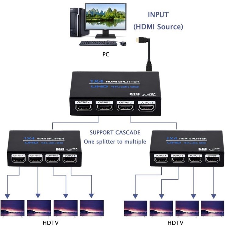 1x4 HDMI Splitter, 1 in 4 Out HDMI Splitter and similar items