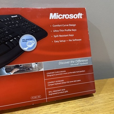 Microsoft Comfort Curve 2000 Keyboard Wired USB Ergonomic Compact Design SEALED!