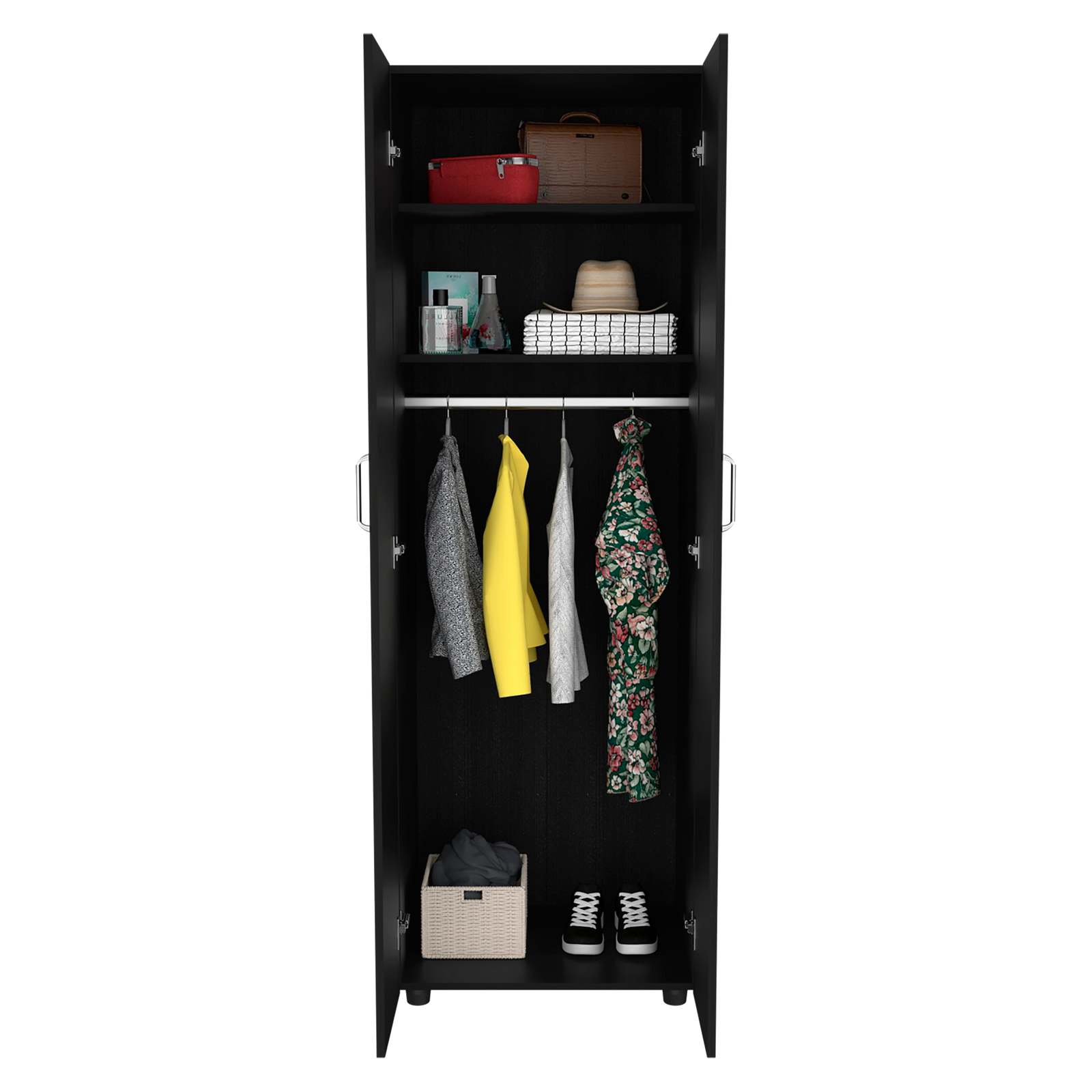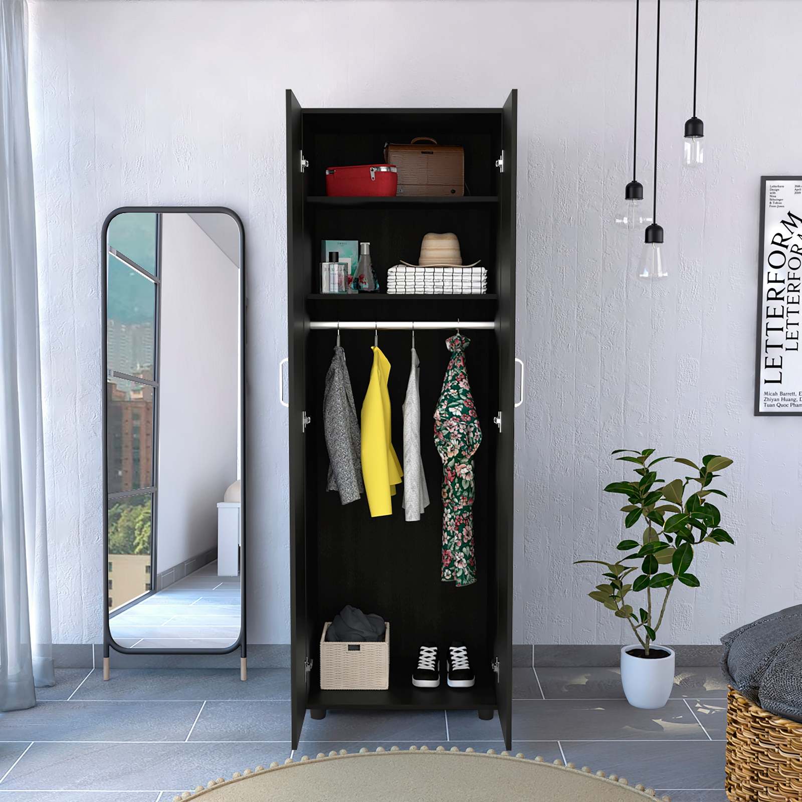 Aurora Armoire, Two Interior Shelves, Rod, Double Door -Black