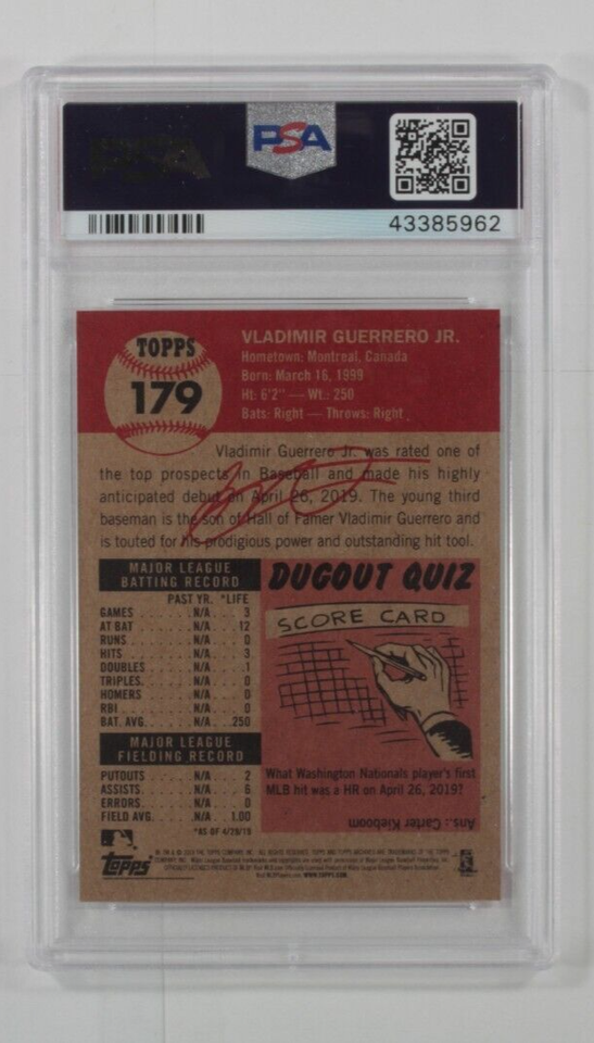 2019 Topps Living Vladimir Guerrero Jr. PSA 10 Gem Mint #179- show original t...
