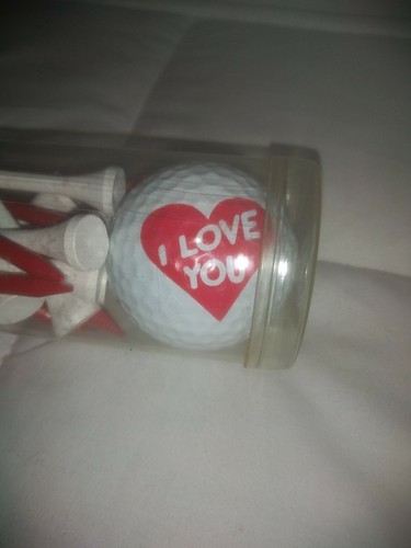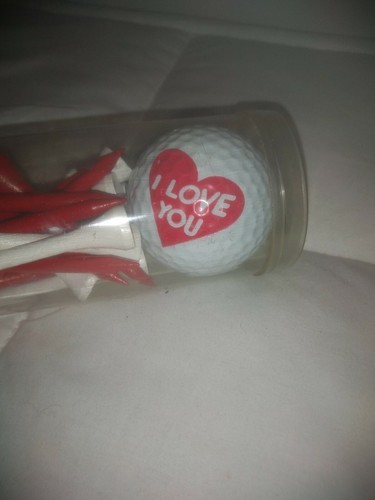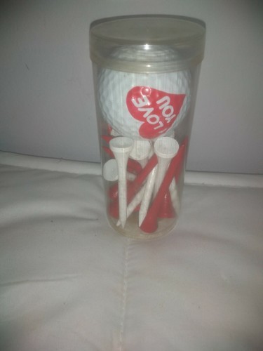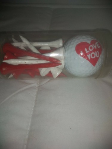 Golf ball and tees gift set Love You heart logo red/white tees HTC Golf World . Shipped with USPS First Class Package.