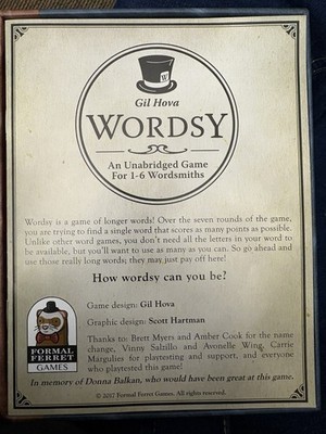 Formal Ferret Gil Hova Wordsy - Unabridged Game for Wordsmiths - New