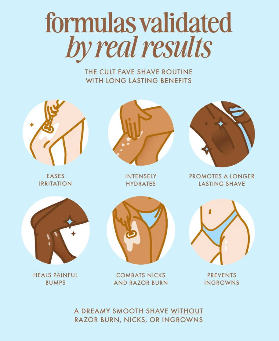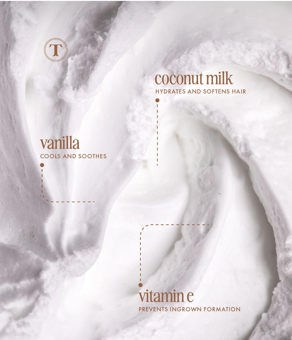 Coconut milk boasts essential amino acids with antioxidant benefits known for anti-microbial properties, making it your perfect shaving companion to soothe and nourish your skin while helping reduce possible ingrowns, for your smoothest shave ever.