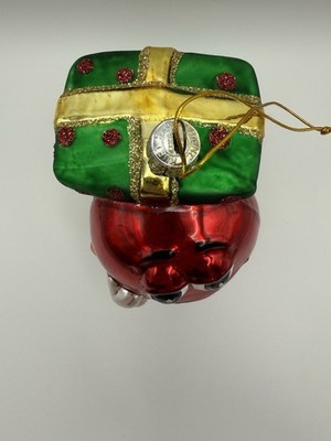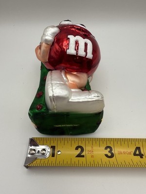 Red M&M's Glass Christmas Ornament by Kurt Adler Red Present 5” Tall