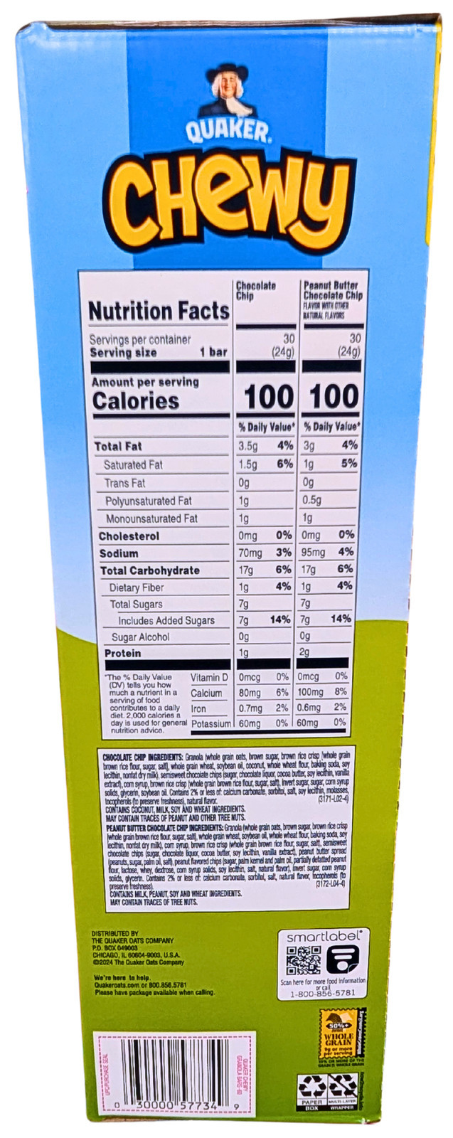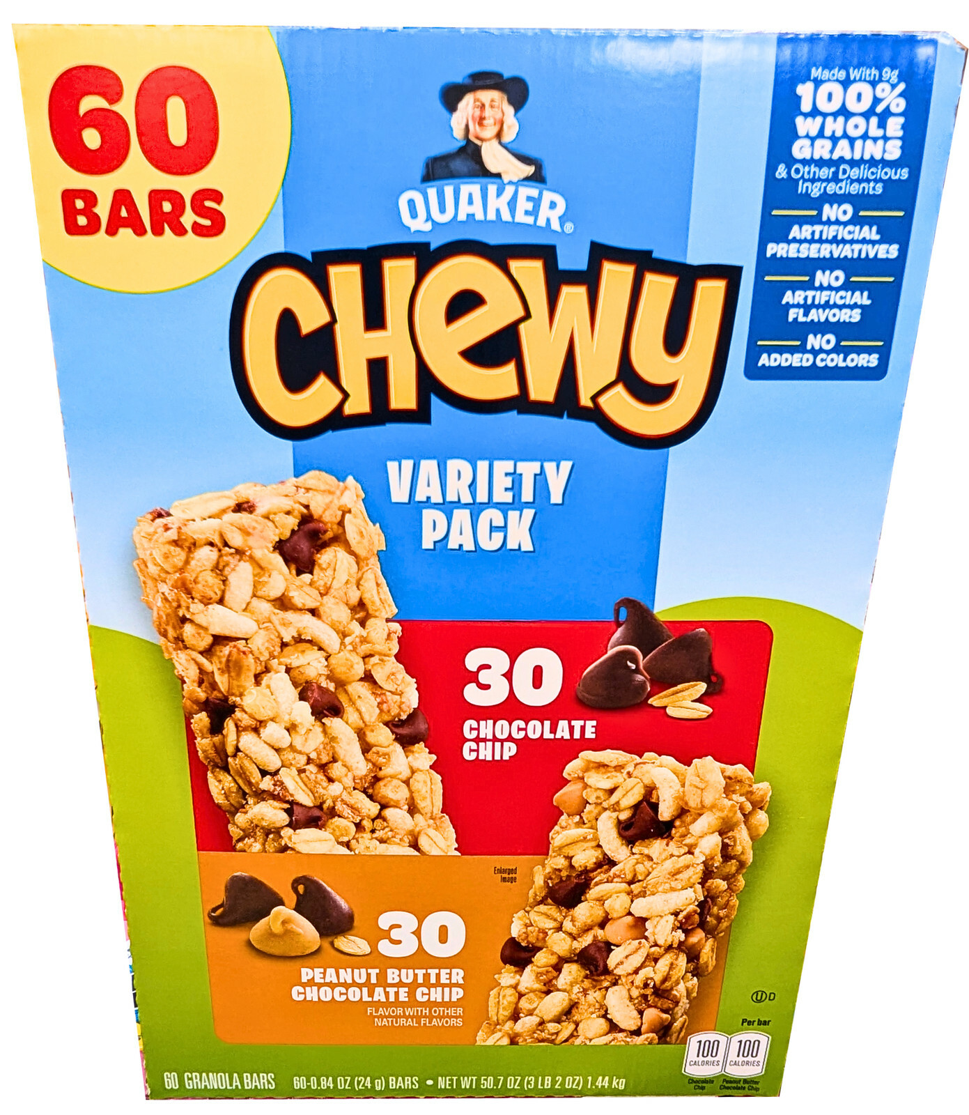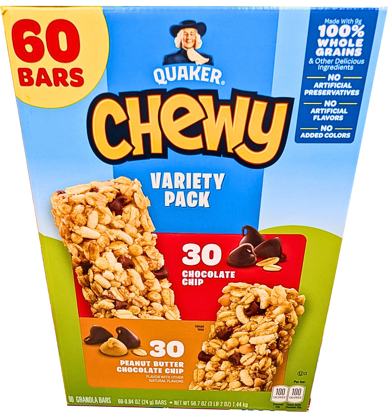 Quaker Chewy Granola Bar Variety Pack Choco Chip Peanut Butter 60 Count EXP 3/26