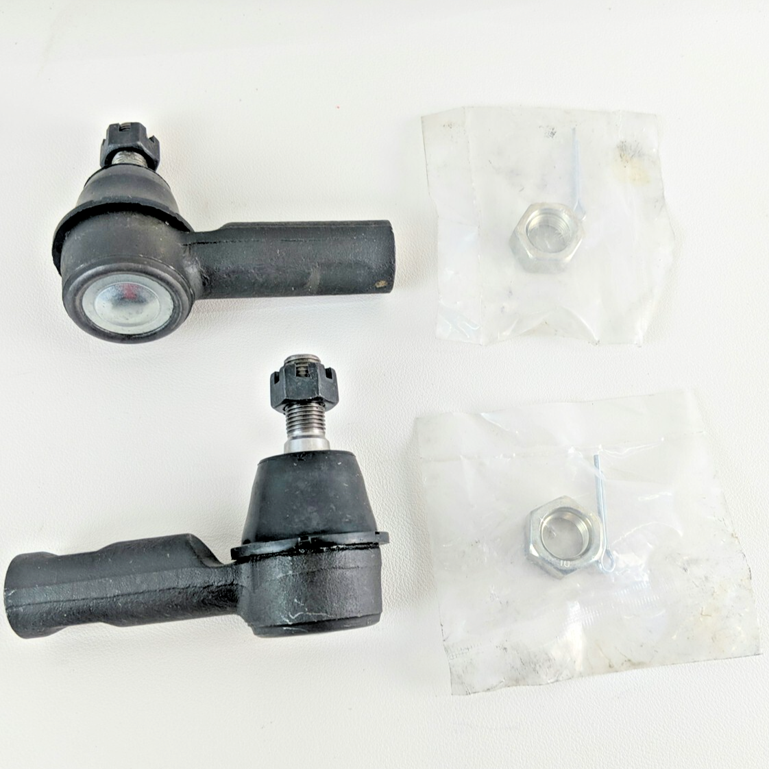 This listing is for a set of two TRQ PSA68803 outer tie rod ends, which are designed to fit Toyota Tacoma models. These tie rod ends are made with high-quality materials and are coated for durability. They come with a cotter pin and nut for easy installation.