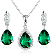 Teardrop Birthstone 925 Sterling Silver Rhodium Plated Gemstone Jewelry Set for