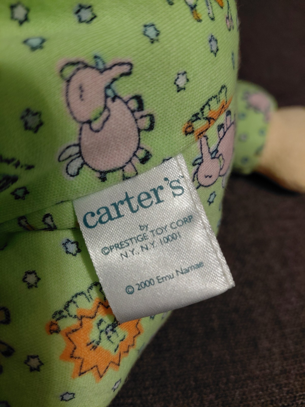 The Vintage Carter's 2000 Emu Namae Puppy Dog Musical Pull Toy is a charming and nostalgic plush toy for babies aged 0-6 months.
