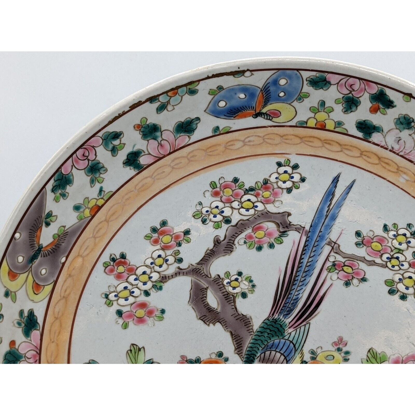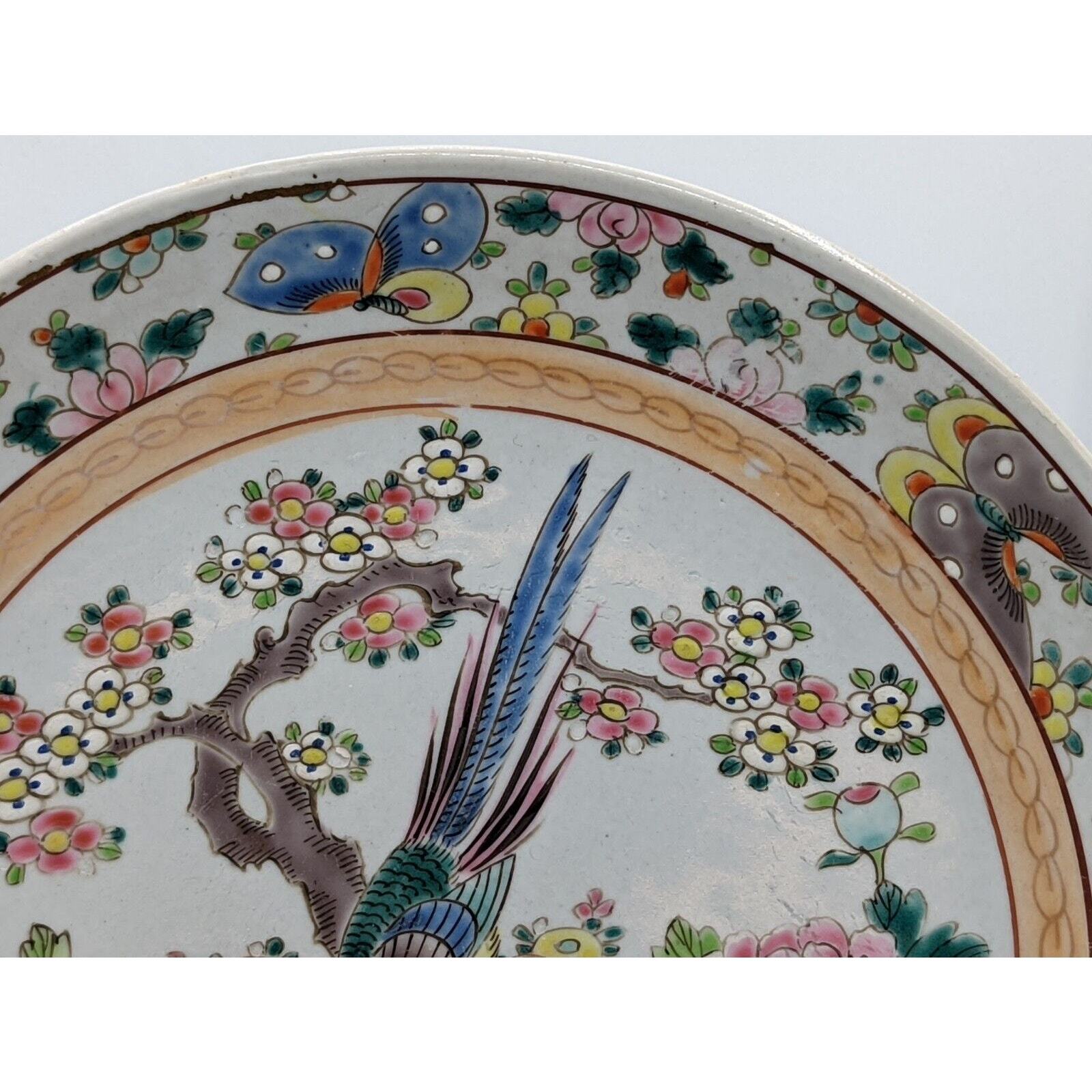 Antique 19th C. Nippon Plate Hand painted Flowers Pheasant Butterflies Japan