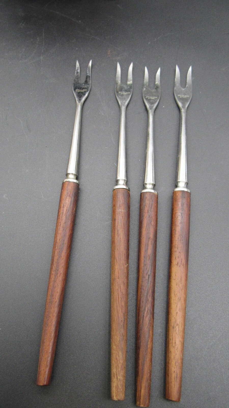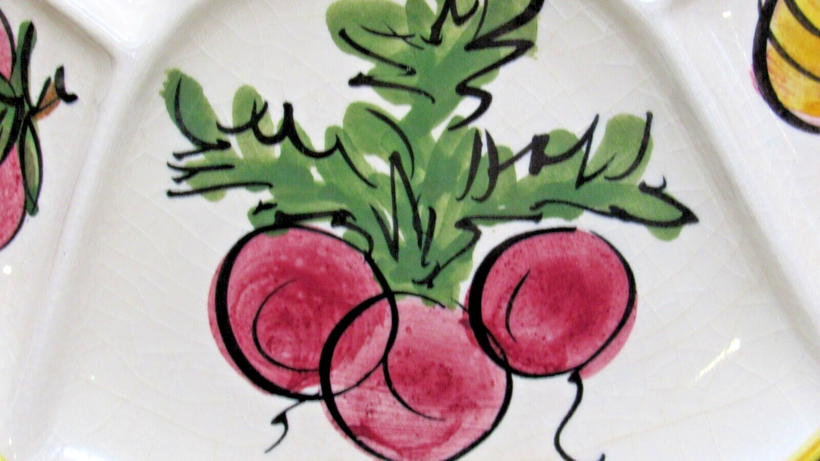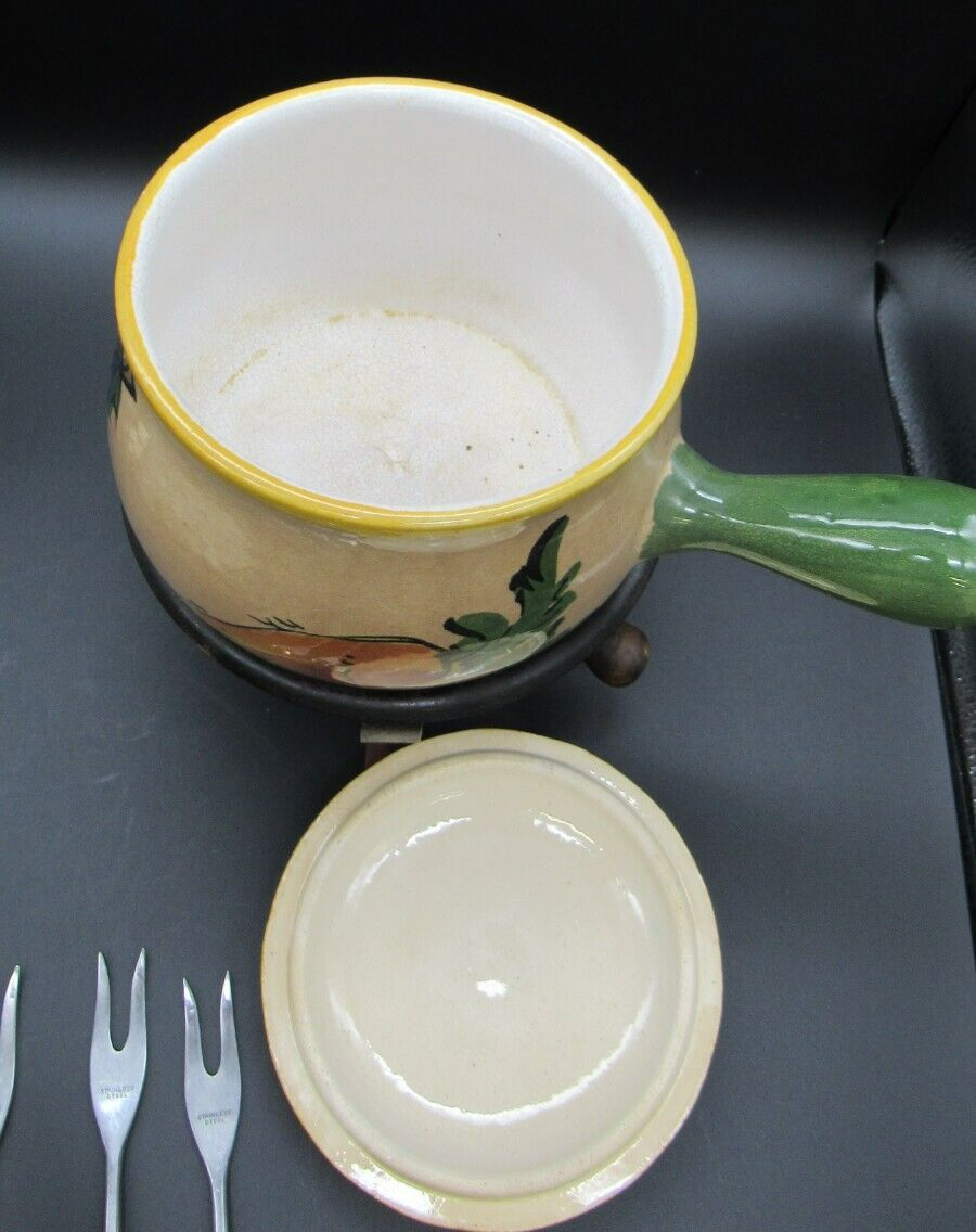Vtg MCM Pottery Fondue Set Divided Plates Hand painted Unique Set Of 4 Complete