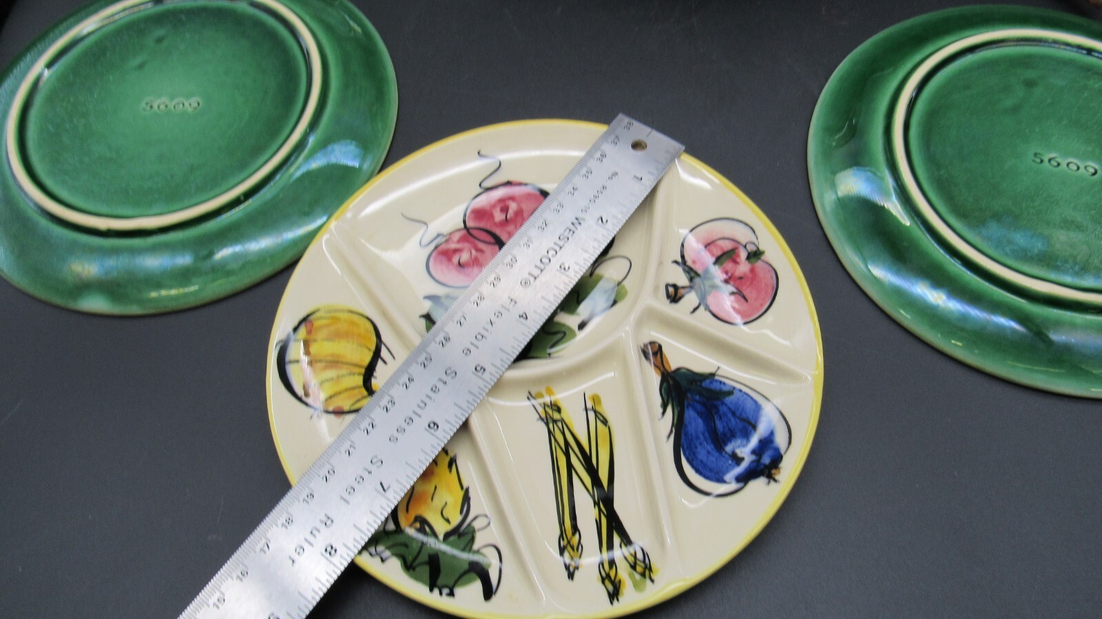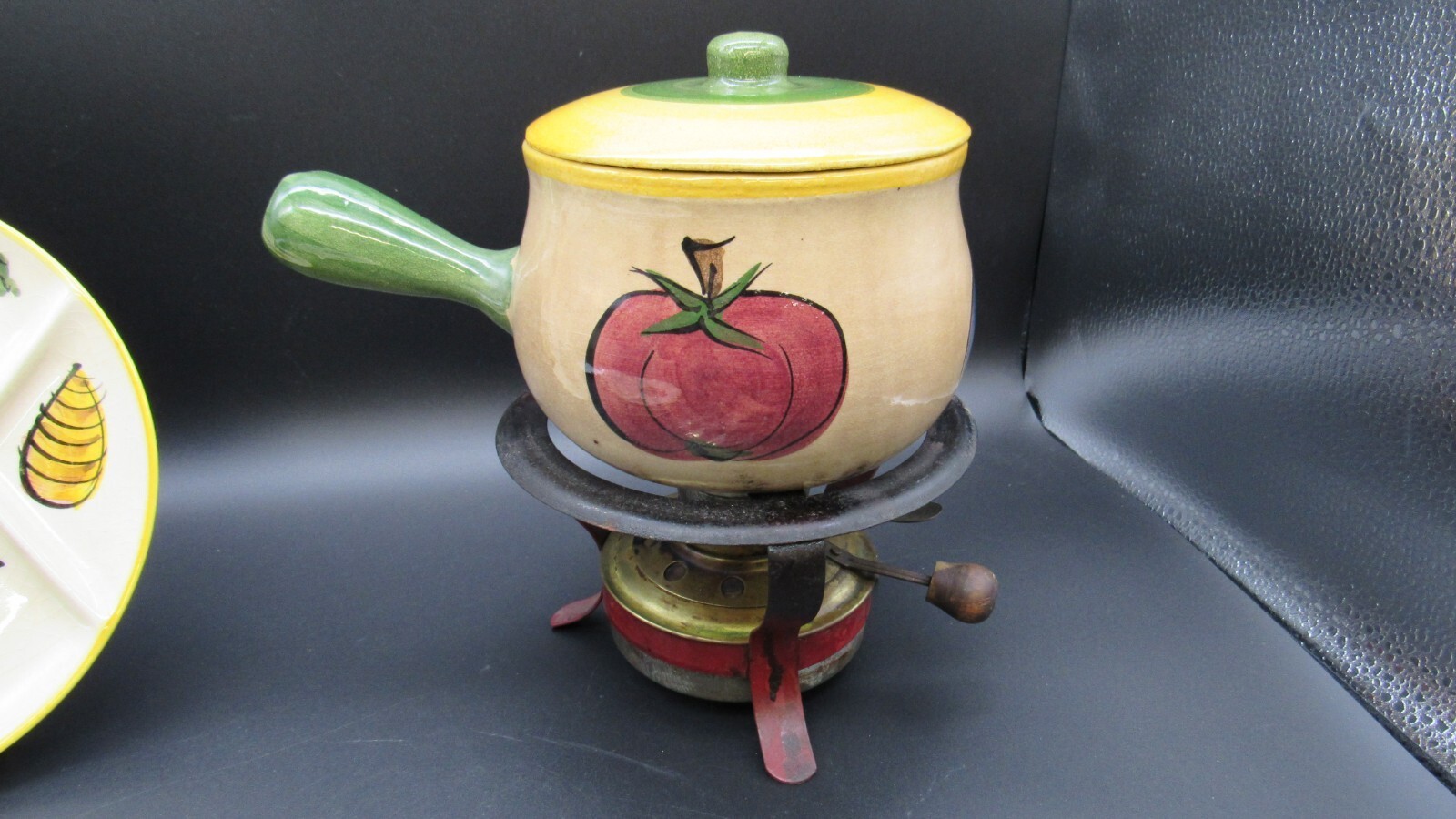 Vtg MCM Pottery Fondue Set Divided Plates and 26 similar items