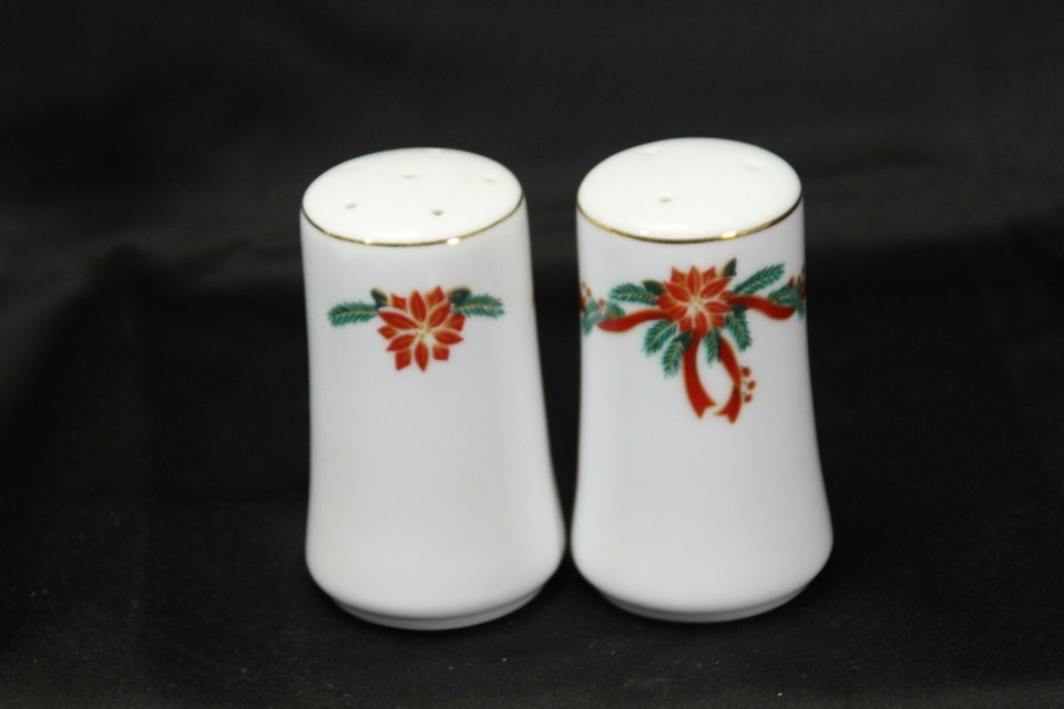 Poinsettias and Ribbons Salt and Pepper Shakers Christmas Xmas