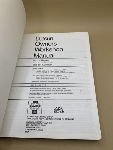 Datsun 510 (1978-1981) Haynes Repair Manual (USA).