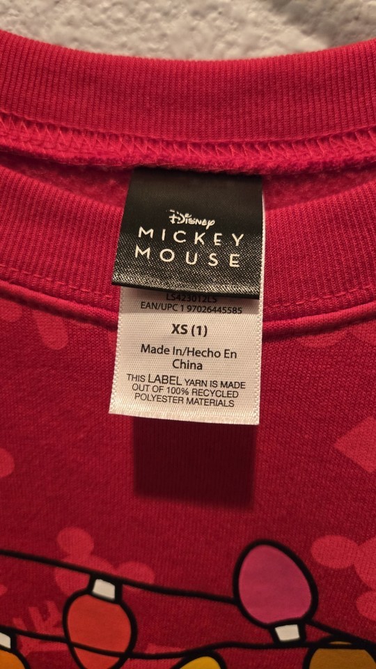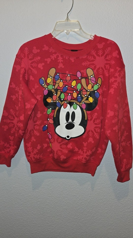 Disney Mickey Mouse Holiday Fleece Red Sweatshirt Christmas NWOT SZ XS