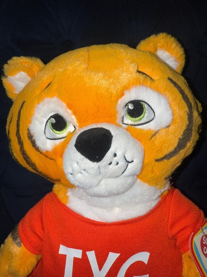 The Hallmark Shirt Tales Tyg Plush Tiger is a cute and cuddly stuffed animal that is part of the Shirt Tales character family. This 14-inch tiger plush toy features vibrant orange color and is perfect for children who love animals and stuffed animals. The brand, Hallmark, is known for producing high-quality and collectible plush toys, making this Tiger a great addition to any stuffed animal collection.