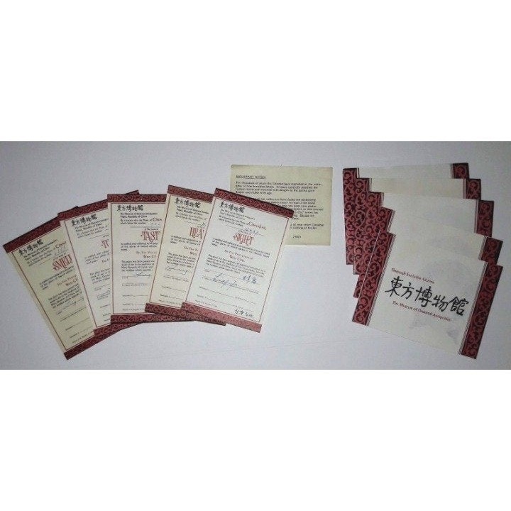 "This series is celebrating the "Five Perceptions of Weo Cho" and is based on the original work of the Ming Dynasty artist "Chu Yiian-Chang". Each plate is depicting the five senses of smell, hearing, sight, touch and taste. These replica Ming Dynasty of China plates were made for the Museum of Oriental Antiquities and approved for export.