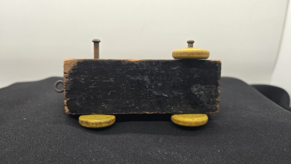 Up for sale is an authentic antique wooden toy train tender, being sold for parts or restoration.