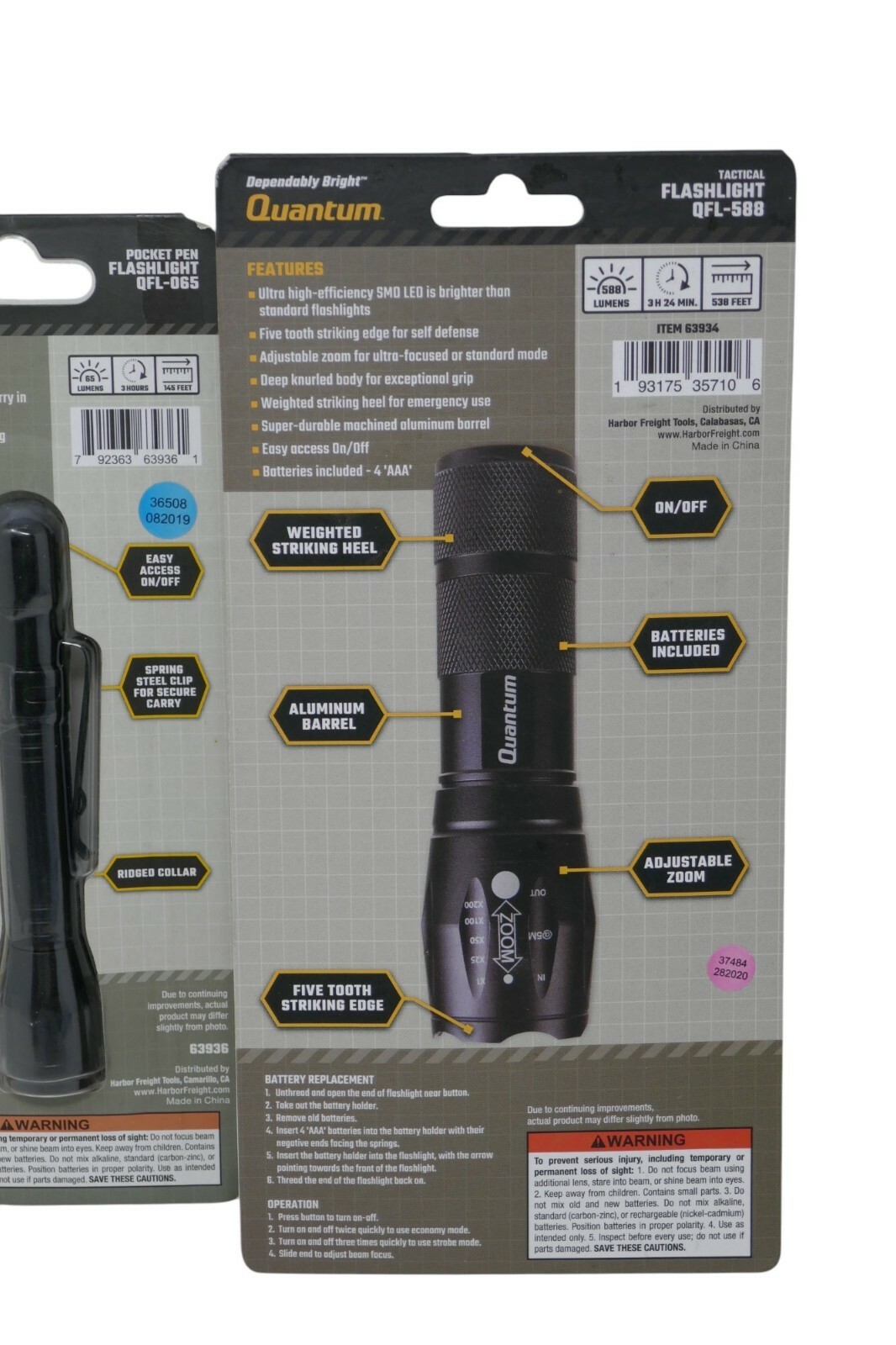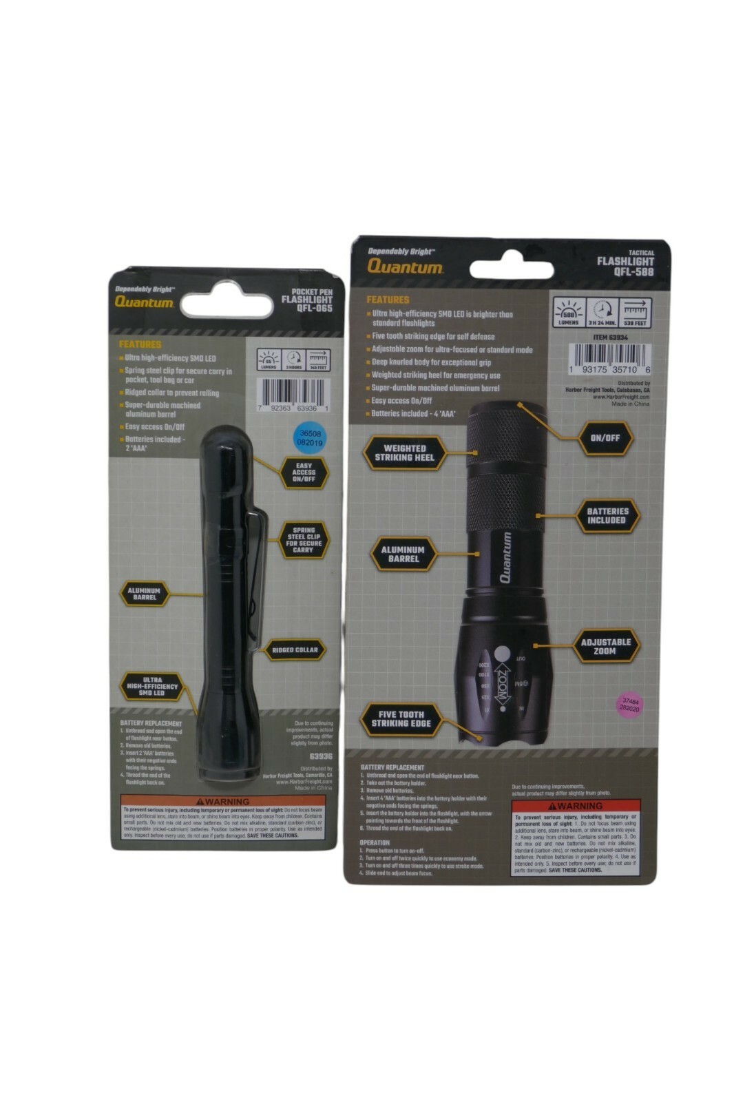 Quantum Tactical Flashlight QFL-588 & Pocket Pen Flashlight QFL-065 NEW