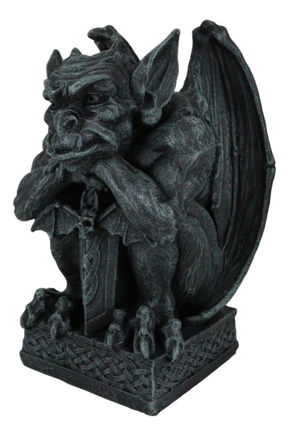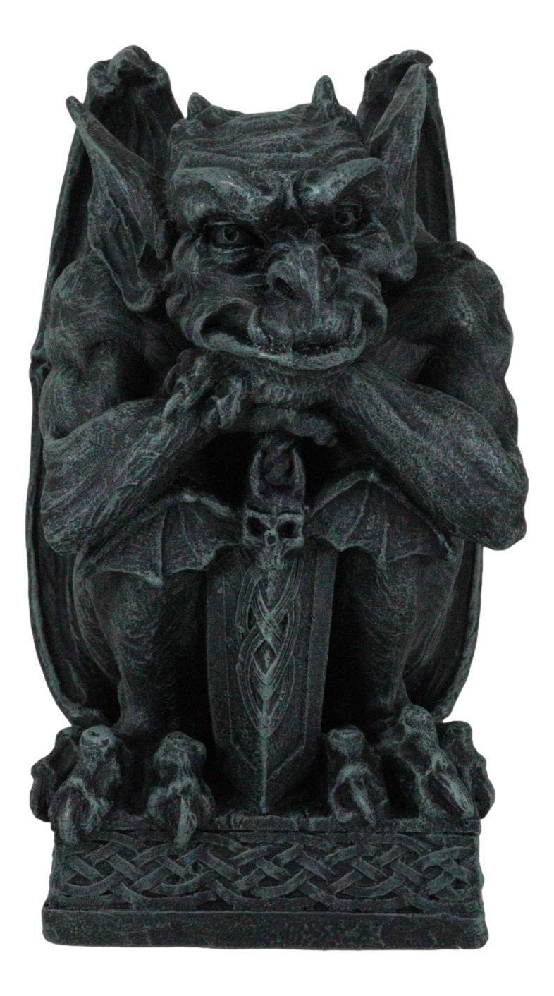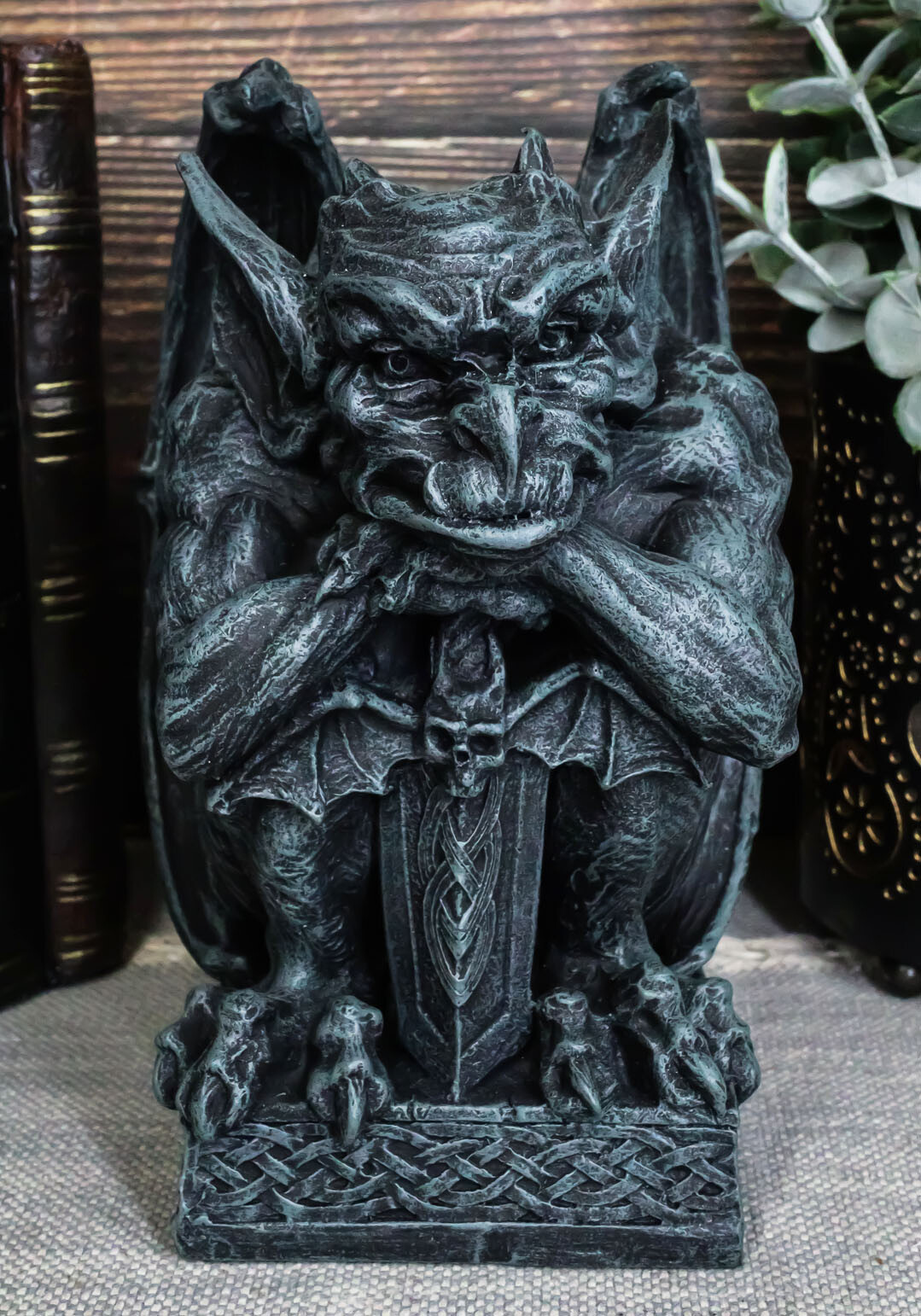 Ebros Stoic Warrior Notre Dame Gargoyle Holding Gothic Bat Sword Figurine 6.5"H