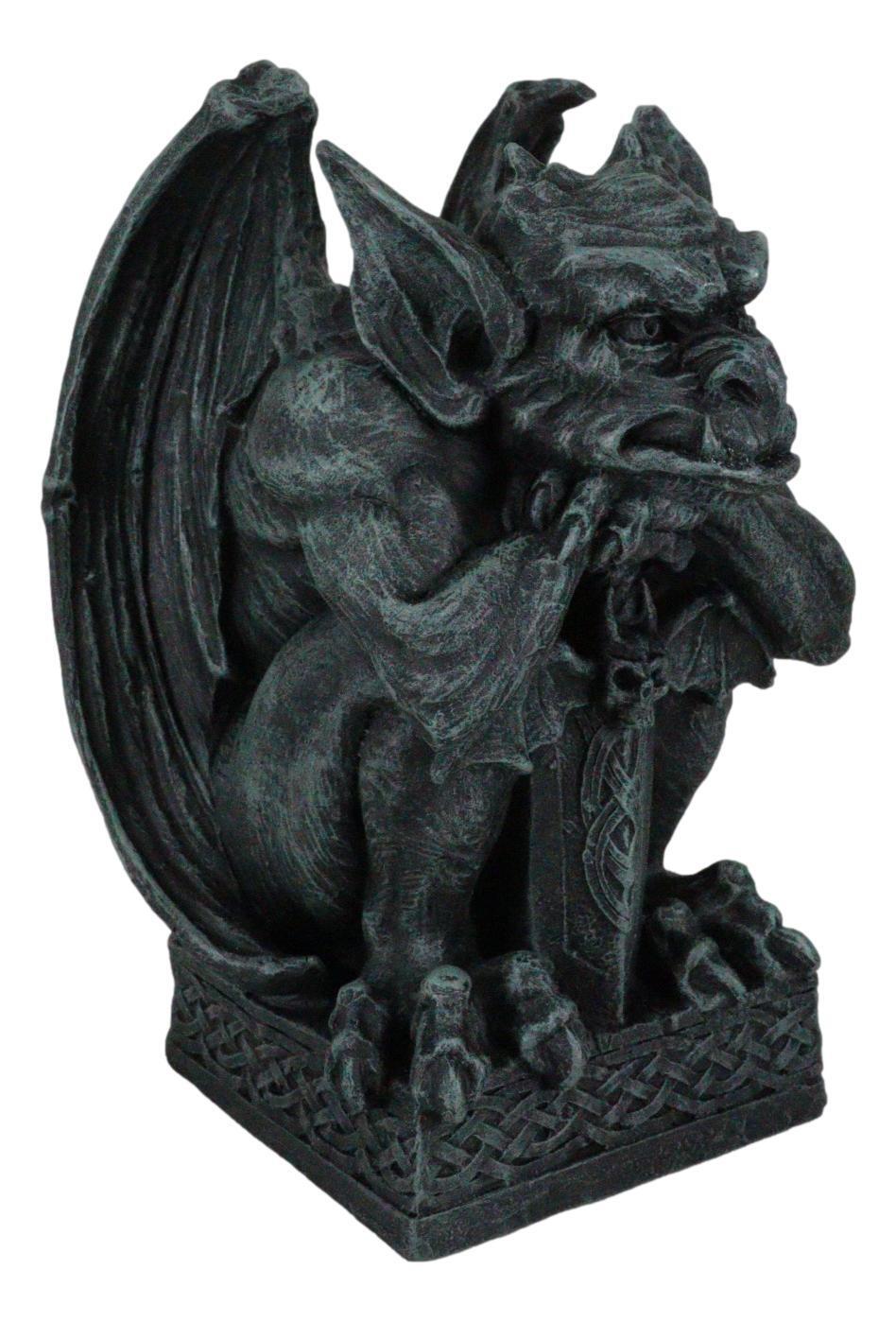 ? If you love gargoyles and gothic decors, this figurine will suit you perfectly. This Sword Bearer Gargoyle will keep the evil spirits away from your home! He crouches on the castle pedestal holding a bat sword that sends evil spirits to the abyss.