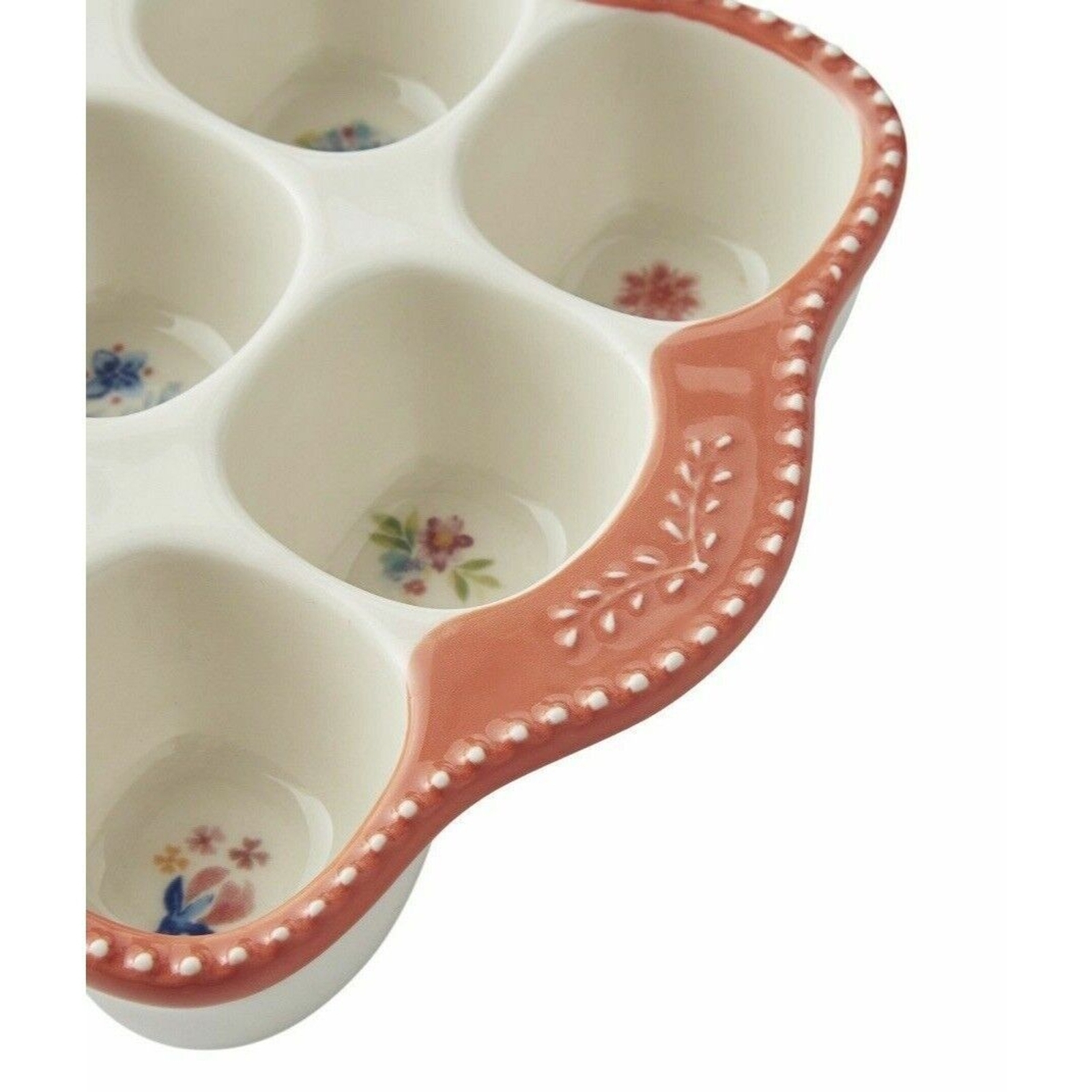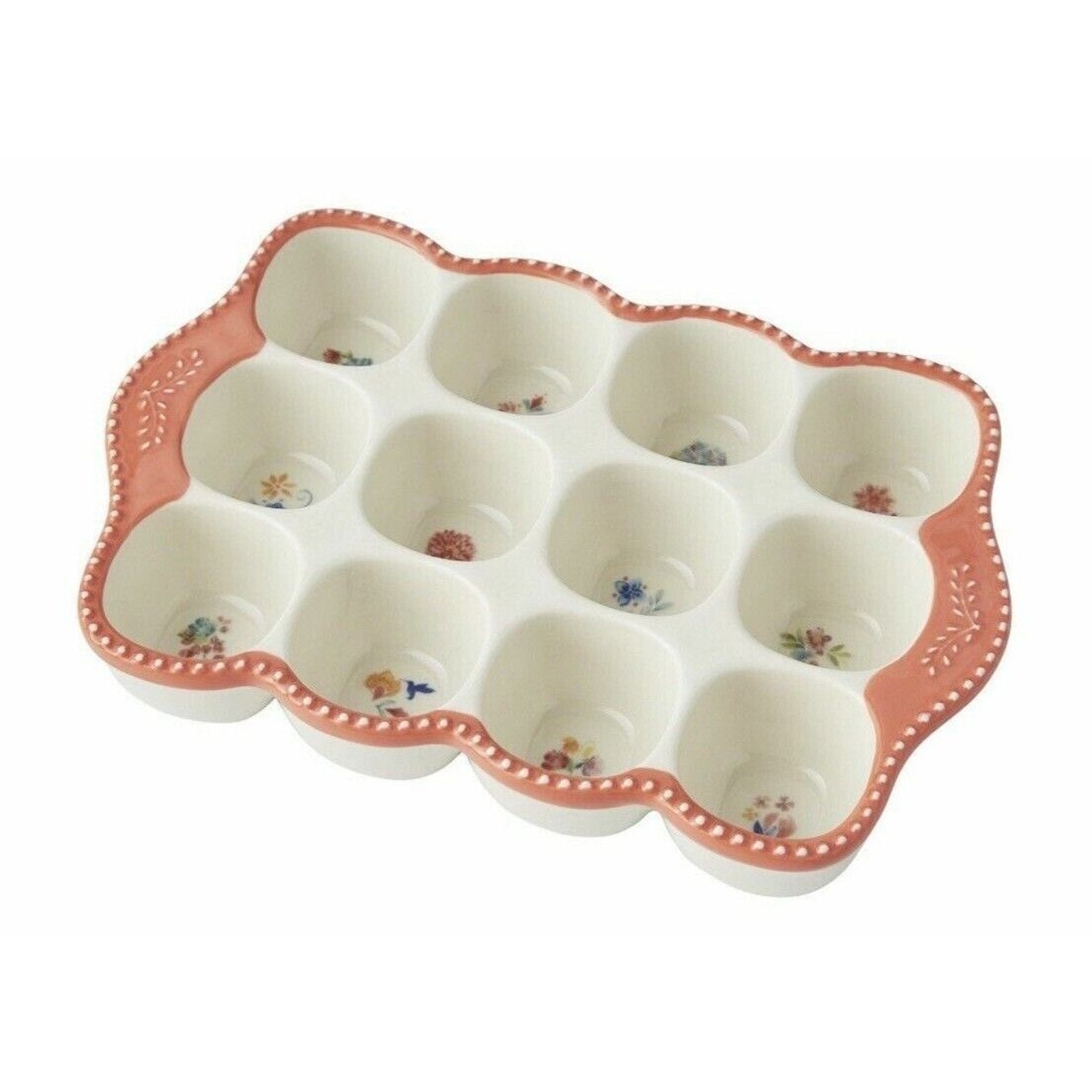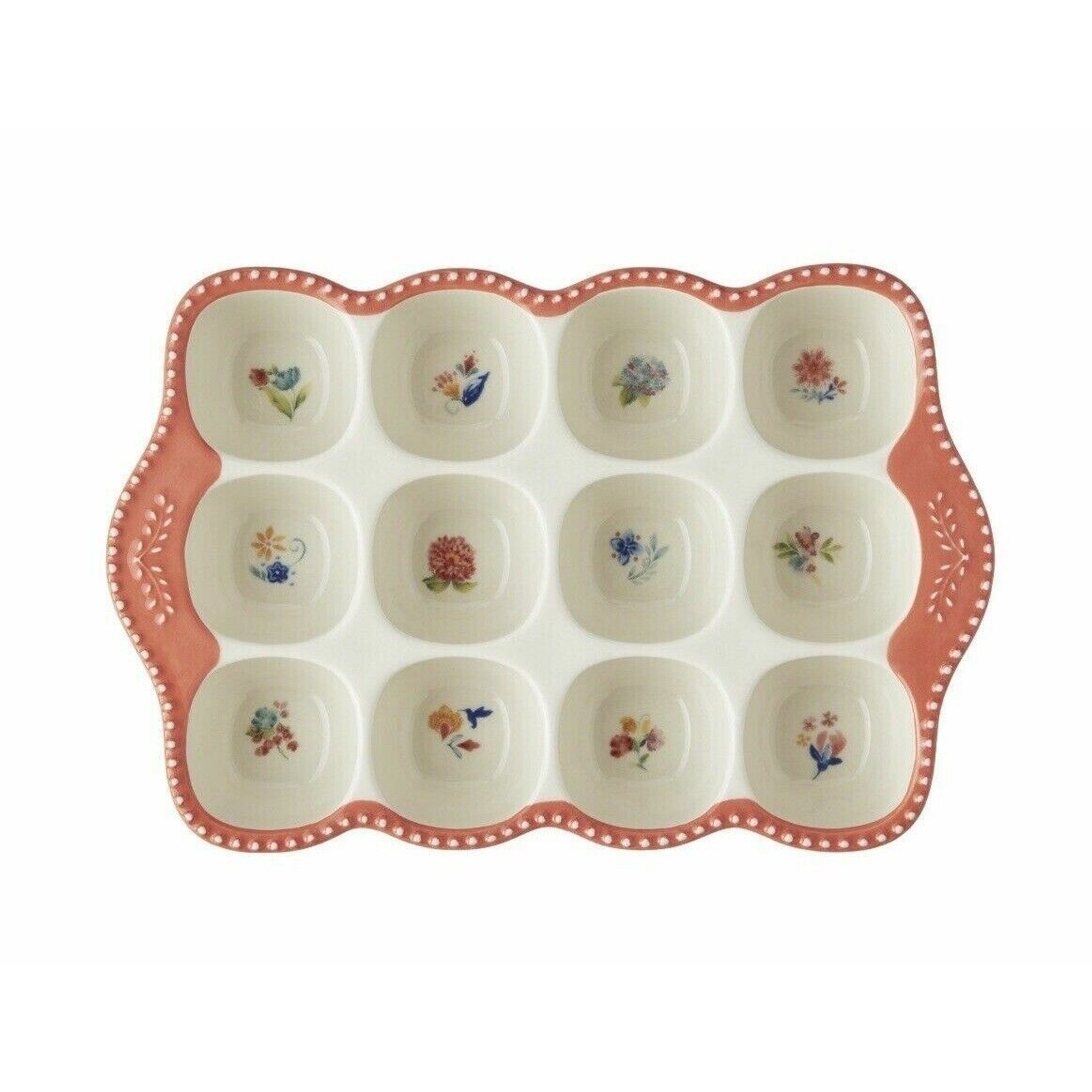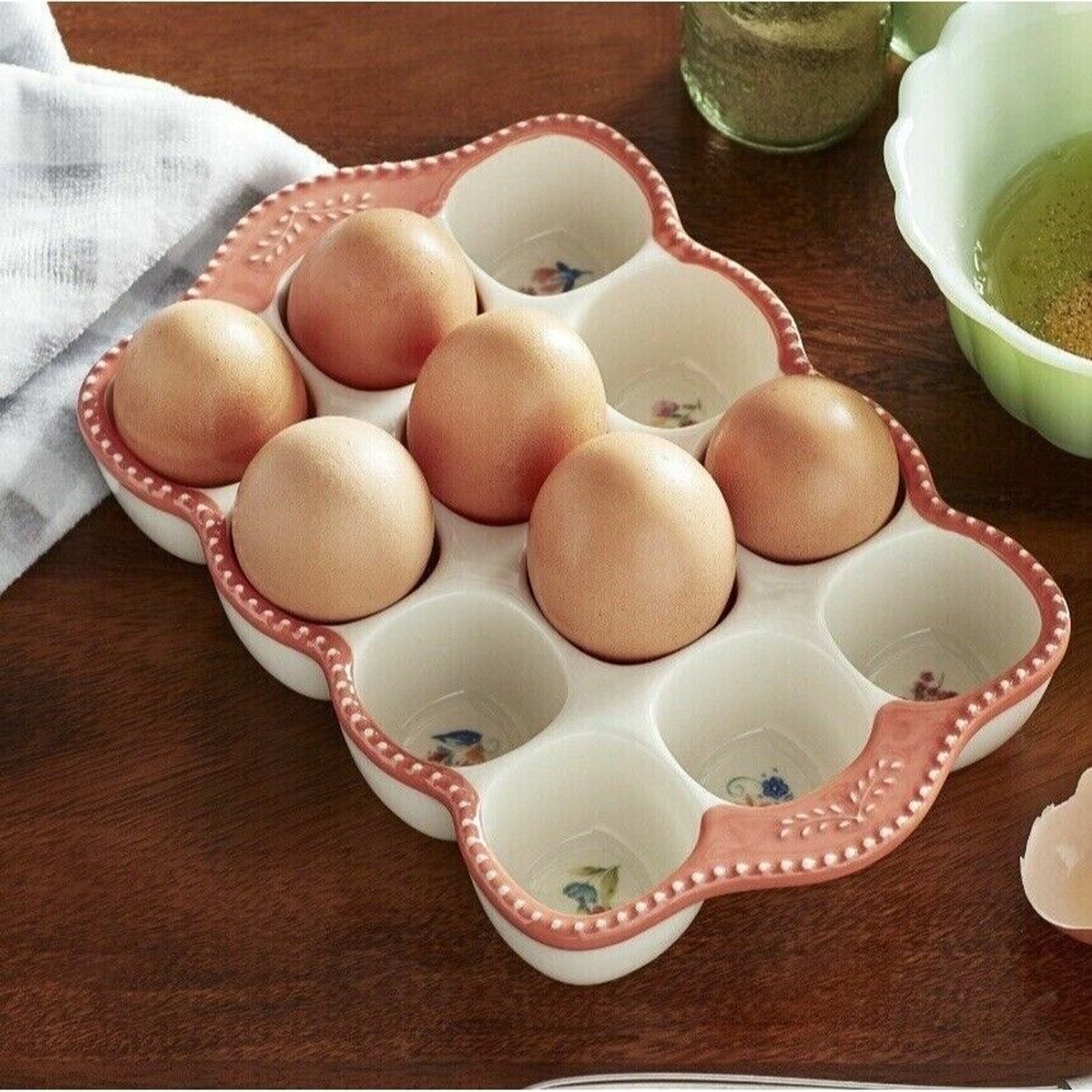 Pioneer Woman Blooming Bouquet 12-Egg Holder Embossed Stoneware Farmhouse NEW