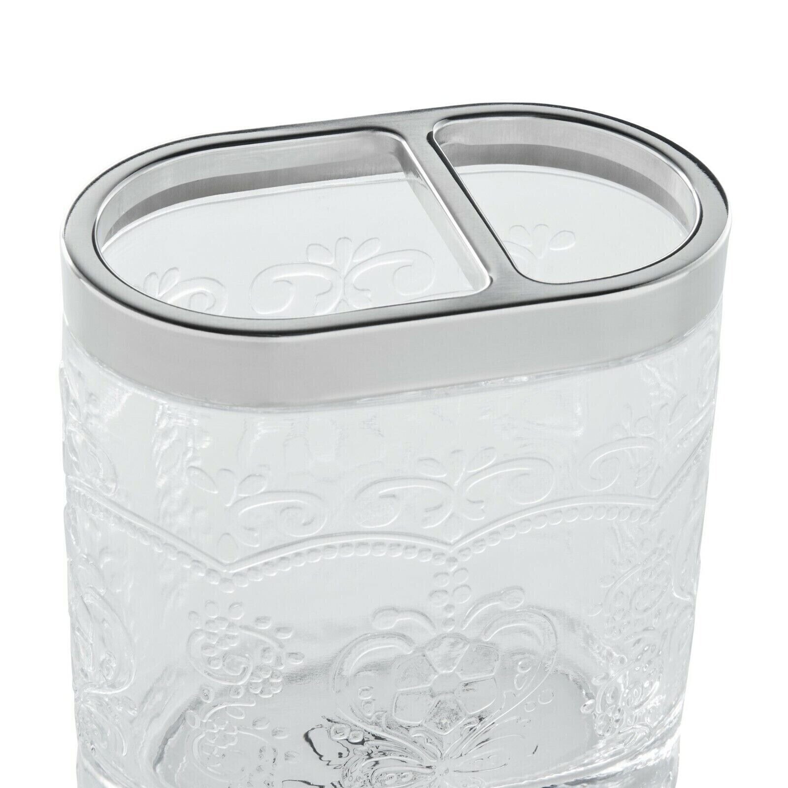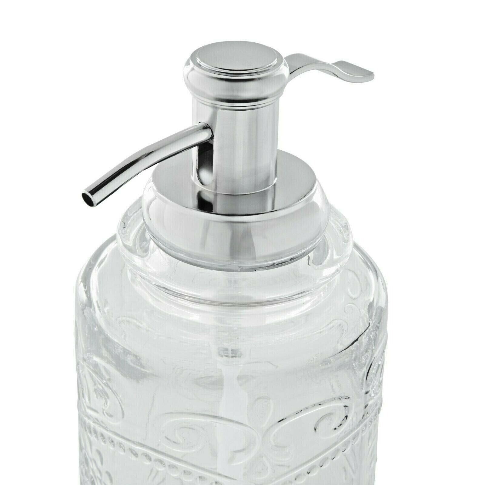 Pioneer Woman Clear Glass Amelia Soap Dispenser Toothbrush Holder Embossed NEW