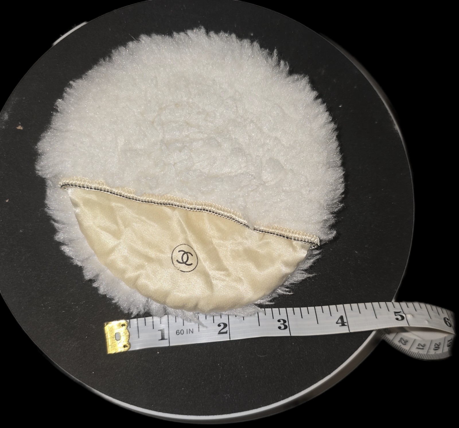 Vintage Chanel Lg 4.5" Powder Puff Silk With Pocket With CC Logo Free Shipping