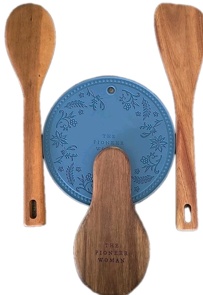 Pioneer Woman ~ Utensil Set ~ Trivet ~ Spoon Rest ~ Acacia Wood Turner ~ Spoon-3
