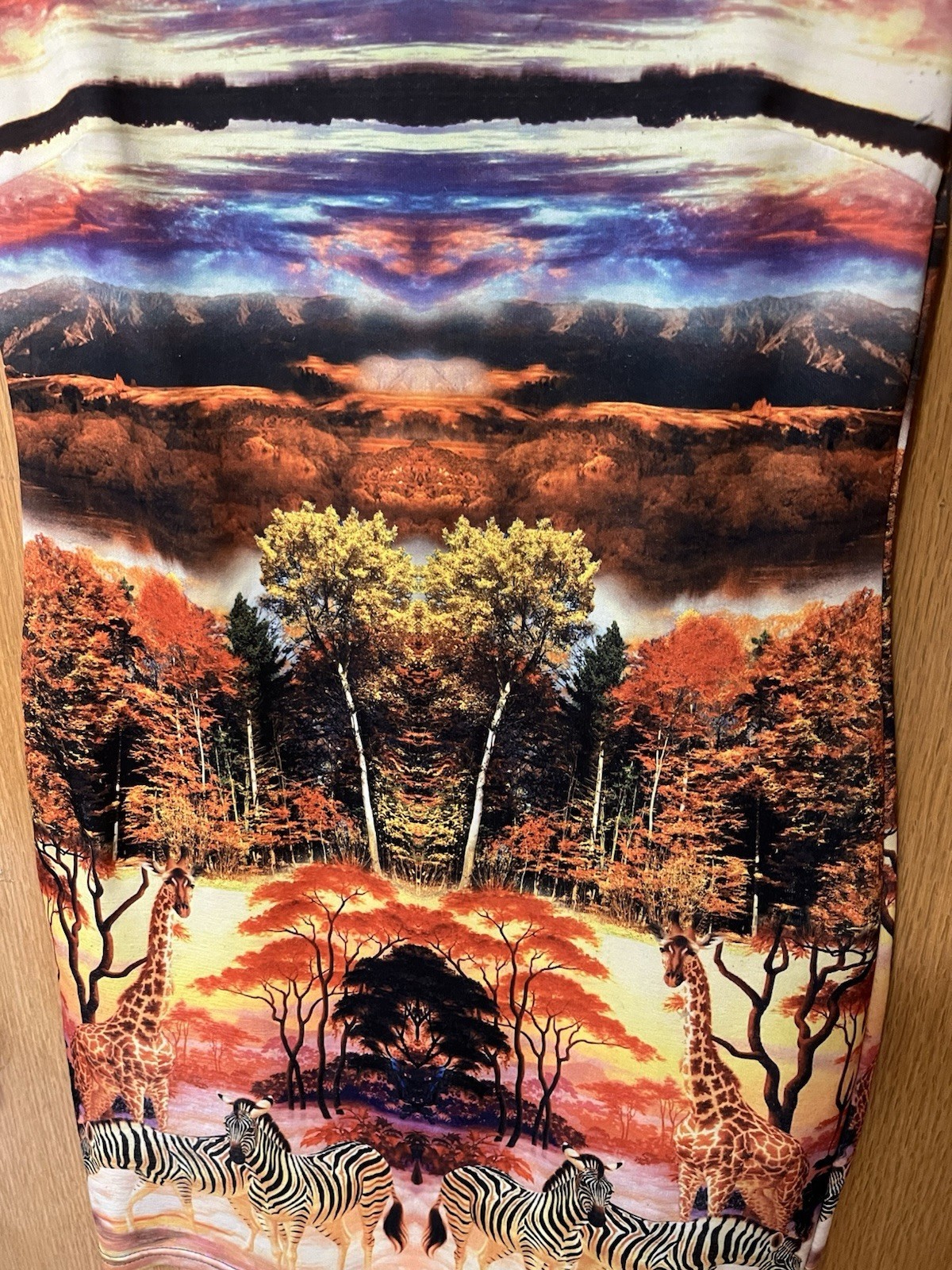 Just Love Africa Dress Womens Size Sm Safari Sunset Multicolor Sheath Print Art
