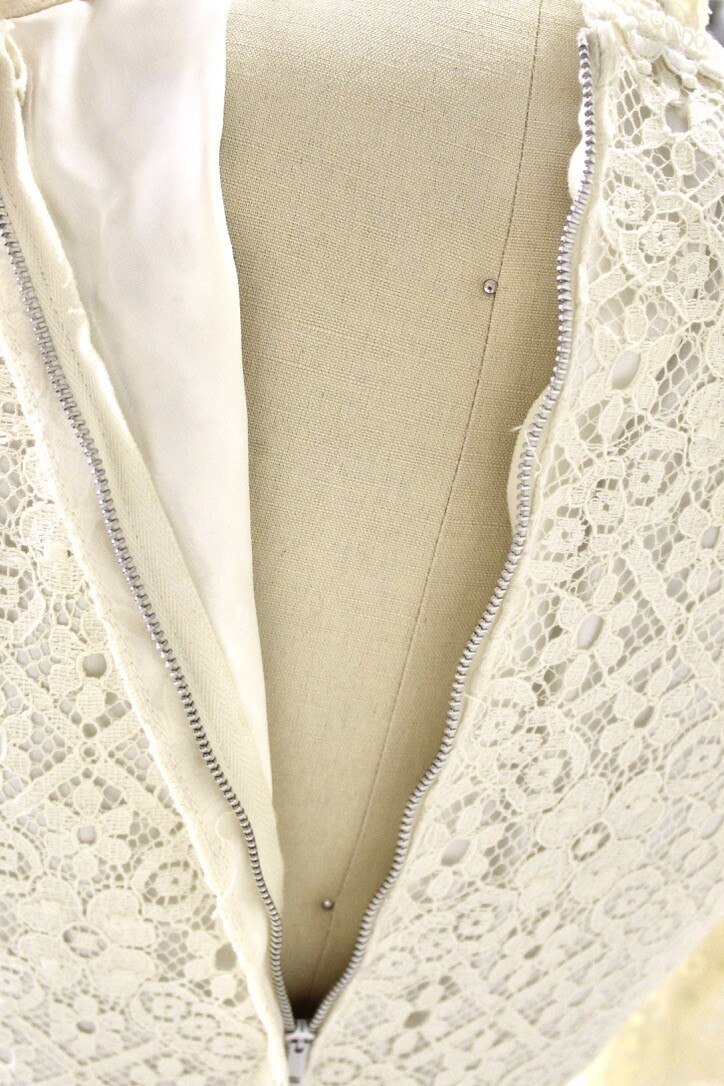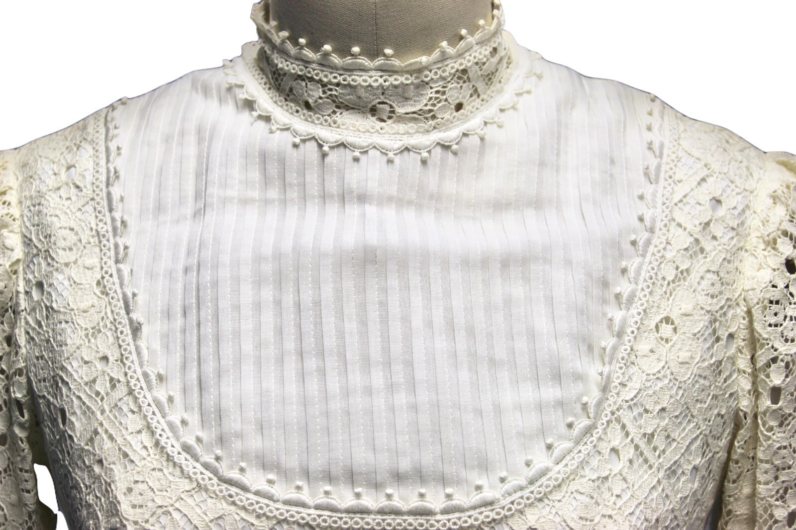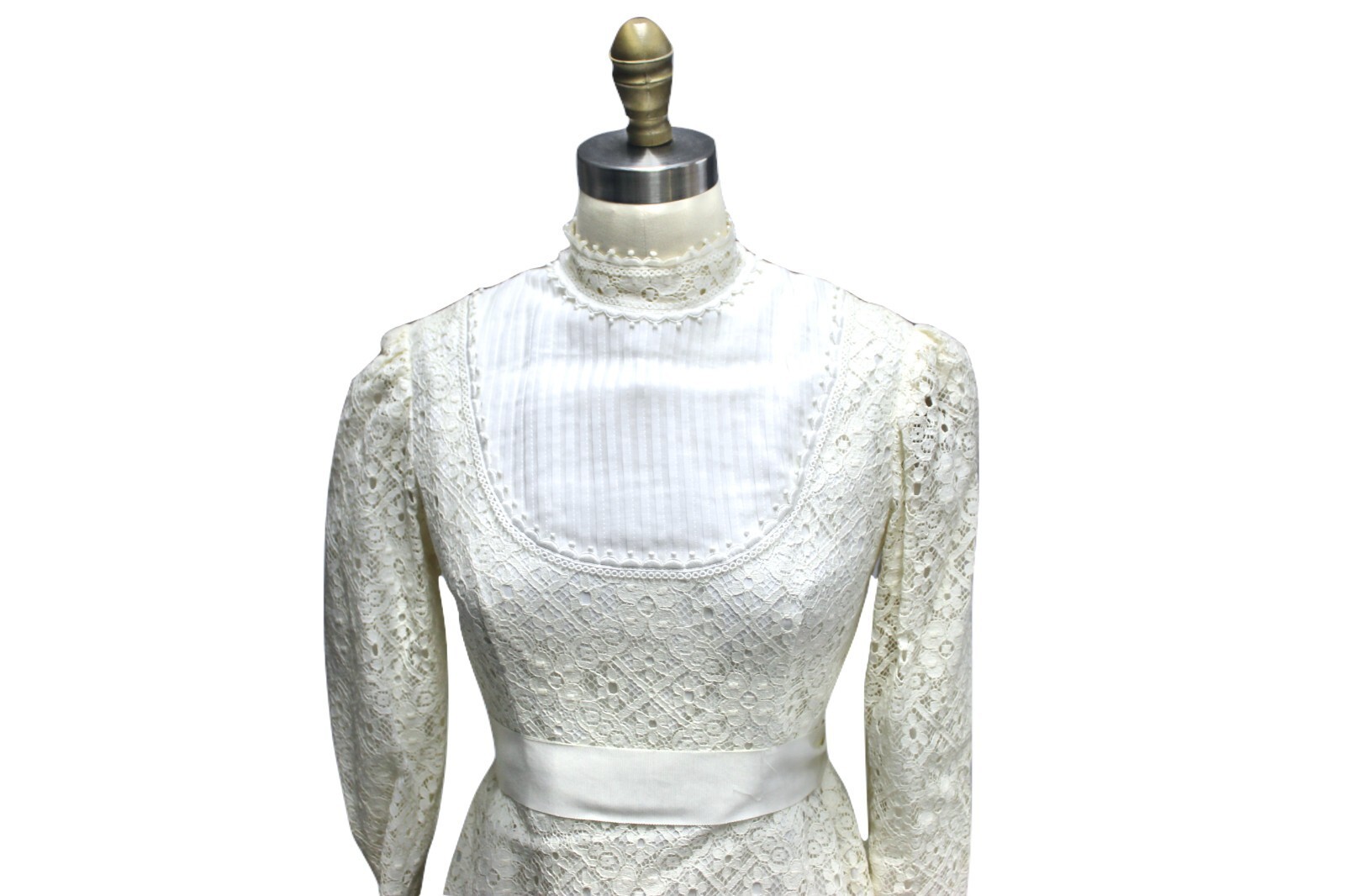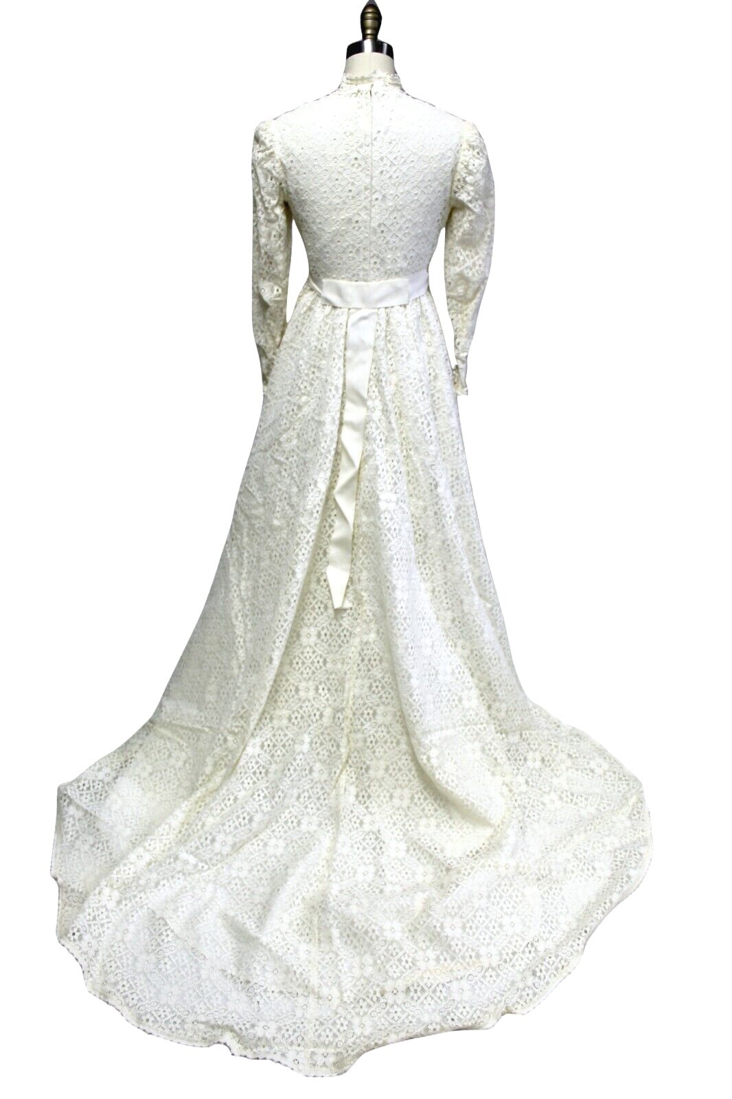 Vintage 1960s-70s-Wedding Gown Ivory Lace Empire Waist Train Veil Trousseau sz 6( fits the size 6 mannequin like a glove)