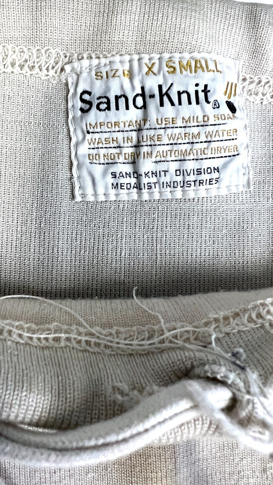 Level up your vintage sportswear collection with these rare Sand Knit men's briefs by Medalist Industries! These aren't just any undies?they have that super firm knit and high waist, giving them a legit old-school athletic vibe. They look like the kind of gear worn under a football or baseball uniform back in the day, so you know they're tough and authentic. They've been washed and are totally clean, ready for a new life as a cool, sustainable piece for your collection or as a legit throwback for your own uniform.