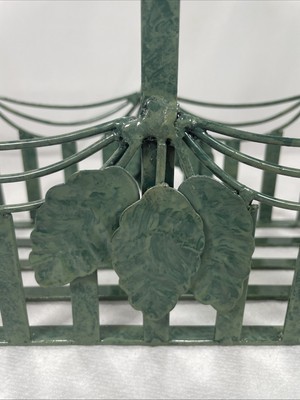 Vintage Grape Leaves 9" Tall Fruit Eggs Decorative Metal Basket Decor 2lbs